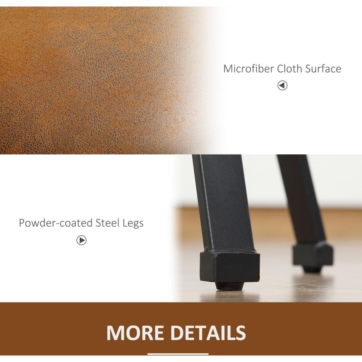 Maximize your dining area potential, thanks to these HOMCOM bar stools. Whether you want to start the morning with a relaxed breakfast or end the night with drinks, they'll bring in some cool retro style into your plans. The steel frames are curved, with darted tops for extra appeal. Padded seats for comfort, with leather-like microfiber cloth for vintage appeal. Complete with a bottom bar to rest legs and feet.