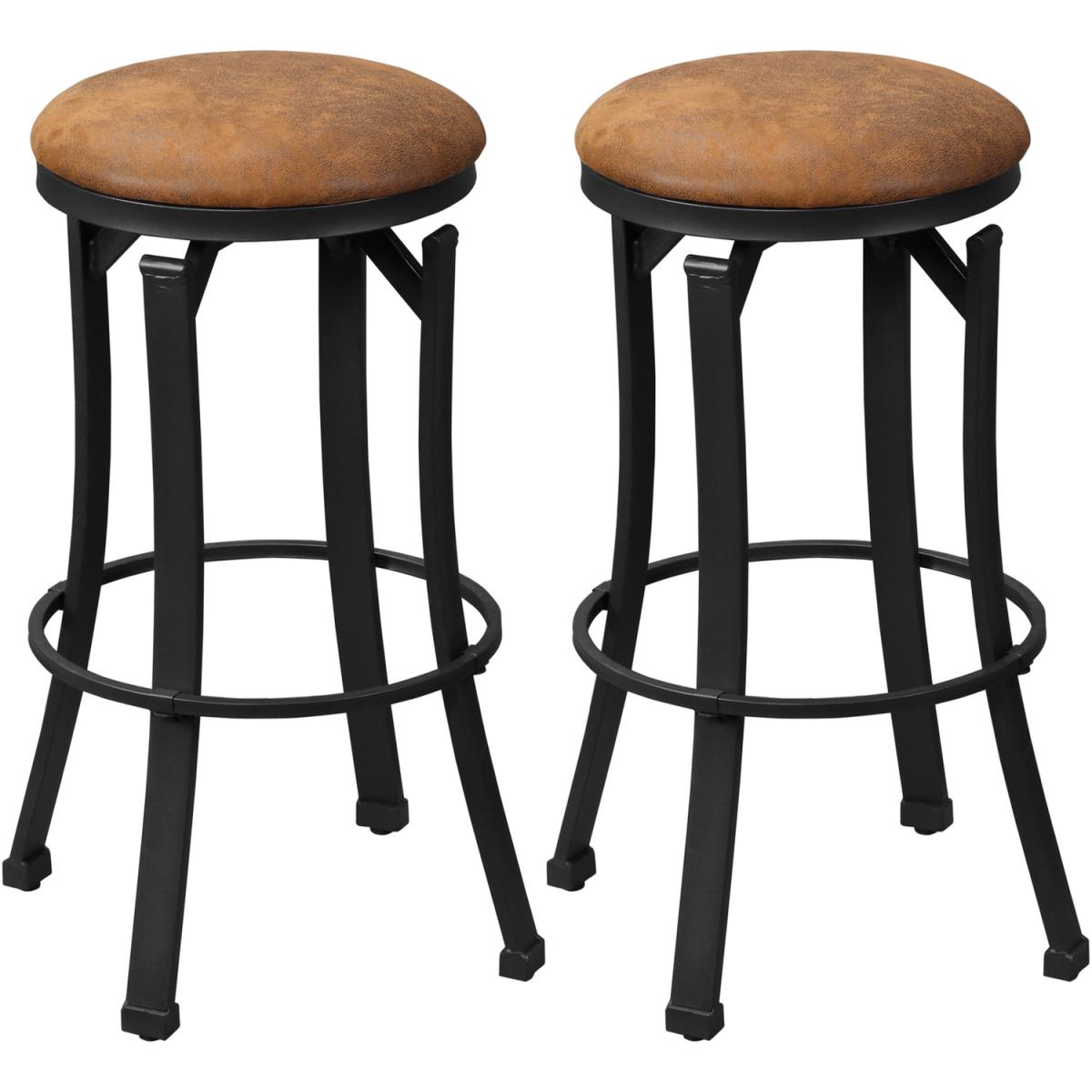 Bar Stools Set of 2 Microfiber Cloth Bar Chairs with Steel Legs - Brown