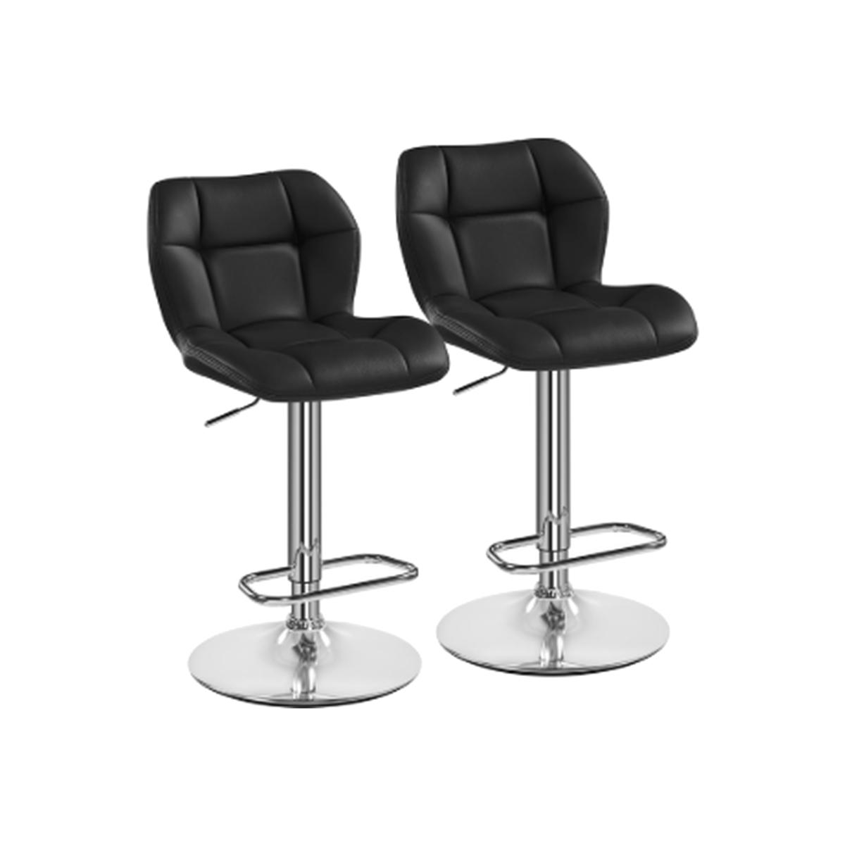 Bar Stools Set of 2 Modern PU Leather Swivel Design - Black