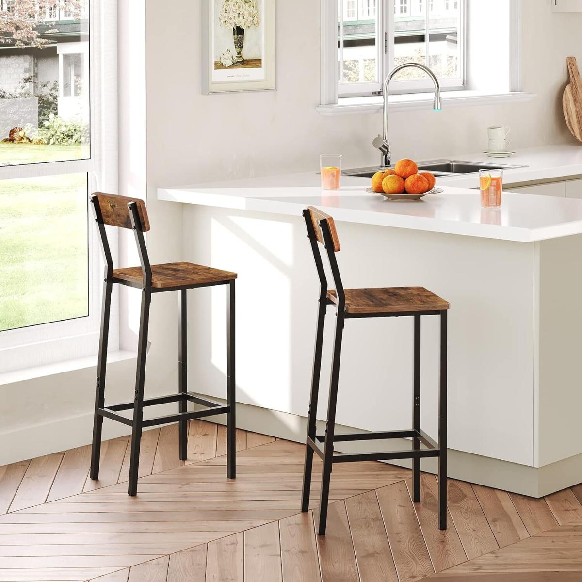With wood grain finish in rustic brown and metal legs in matte black, each bar stool presents its nobleness and versatility in any places to set off the style and temperament of the whole home, showing the quality of life. Each Rectangular bar stool sizes 32 x 30 x 90 cm, very ideal for any standard bar counters. It can not only be used in restaurants to enjoy food with family, but also to sit in the terrace with friends to have a nice afternoon tea time. The backrest design of the bar chair conforms to ergonomics, providing good support for the waist. With comfortable heights of footrests and a smooth panel, it can reduce your fatigue caused by busy life easily. We will provide numbered parts, concise instructions and corresponding assembly tools. Assembly is an effortless task, and you can enjoy this stylish and modern breakfast bar chair set without waiting too long.