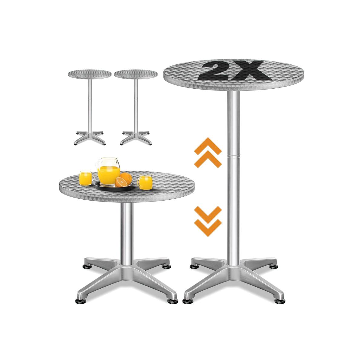 Enhance any space with this elegant 2 piece bar table set, featuring a versatile height adjustment from 70 cm to 115 cm. Designed for both indoor and outdoor use, these durable aluminium tables offer stability with adjustable feet, ensuring a firm stand on any surface. Weatherproof and rust resistant, they require minimal maintenance. Perfect for kitchens, gardens, parties, and cafes, this set adds functionality and style to any occasion.