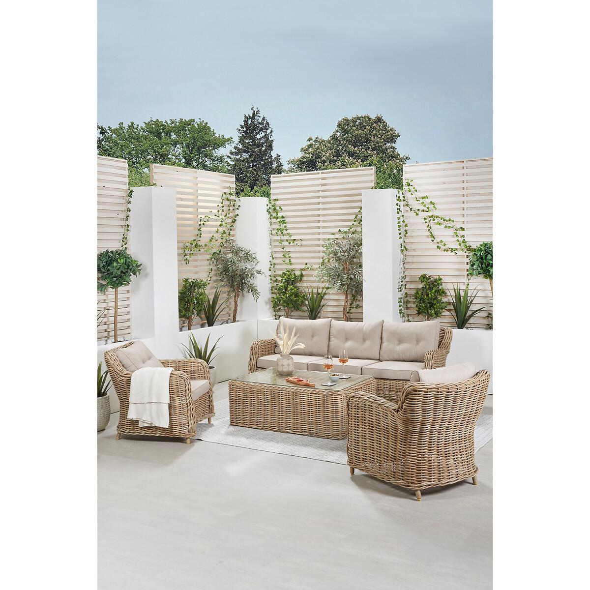Please note: this product cannot be delivered to all Offshore Islands, Northern Ireland or Republic of Ireland - postcodes starting with; AB, BT, DD, IV, KW1-14, PA21-38, PH, TR17-27 & ALL ROI.The Barakaldo Outdoor Lounge Set in stylish Natural Antique Bamboo coloured finish offers a classicly modern shape with a mid height back design for the ultimate lounging experience. Handcrafted in Vietnam, this set comprises of a 3 seater sofa, 2 armchairs, and 1 spacious rectangular coffee table with tempered glass. The seating set is made from 10mm guage, double-skinned, synthetic rattan weave which ensures perfect luxurious styling and a durable weather resistant finish and is perfectly complemented with the Medium Weave Soft Beige season proof cushions. This outdoor set also features a powder coated aluminium frame, which ensures its high quality, robustness and a durable finish. Product Dimensions: Chair: 89x80x83cm. Sofa: 89x221x83cm. Table: 81x127x45cm Parcel 1 Packaged Dimensions: 90cmx85cmx81cm Weight: 28kg Parcel 2 Packaged Dimensions: 85cmx85cmx81cm Weight: 28kg Parcel 3 Packaged Dimensions: 222cmx90cmx85cm Weight: 62kg Parcel 4 Packaged Dimensions: 129cmx84cmx50cm Weight: 34kg. Composition:Wicker 70%, Aluminium 10%, PU Foam 15% and Olefin 5%Please note this item is a large piece of furniture that will require some self assembly. Please ensure you have space to receive delivery. This product will be dispatched by one of our trusted suppliers. You’ll be contacted by their selected courier about your delivery. PACIF01