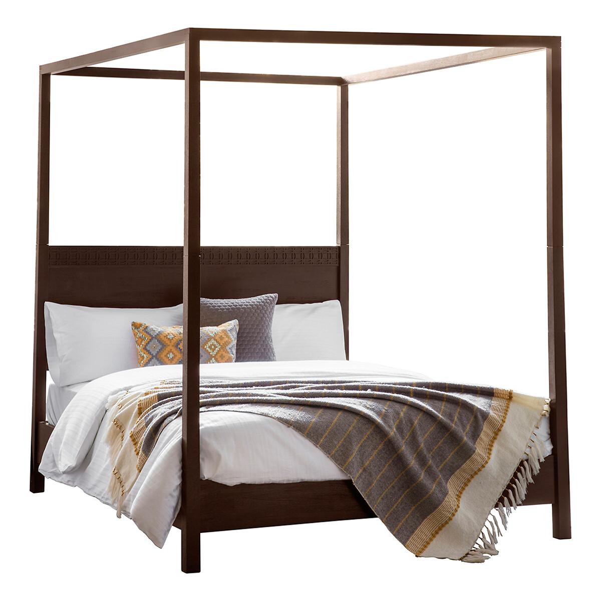 A beautifully eclectic four poster bed made using mango wood, teak, mahogany and ash. It has a stunning matte finish, allowing the different grains in the mixed timbers stand out in the light. The headboard offers a gorgeous inlaid wood design for a global traveller look. Product details. Solid mango headboard detail patterned frieze of blind fret work Square shaped feet. Supplied with slatted base Mattress not included. Assembly required. Actual Size of Bed L 211 x W 161 x H 200 cm (King)L 211 x W 191 x H 200cm (Superking)Mattress Size: 140 x 190cm (Double), 160 x 200cm (King) , 180 x 200cm (Superking)Footboard height - 33 cm Clearance to floor (storage area height) - 14 cm. Under Bed Storage Height - 14cm Parcel Dimensions:King:Box 1 - 205 x 137 x 18cm. Box 2 - 217 x 39 x 34cmSuperking:. Box 1 - 205 x 137 x 18cm. Box 2 - 217 x 39 x 34cm. Full Assembly Required. Please note: this product cannot be delivered to all Offshore Islands, Northern Ireland or Republic of Ireland. This product will be dispatched by one of our trusted suppliers. You’ll be contacted by their selected courier about your delivery.