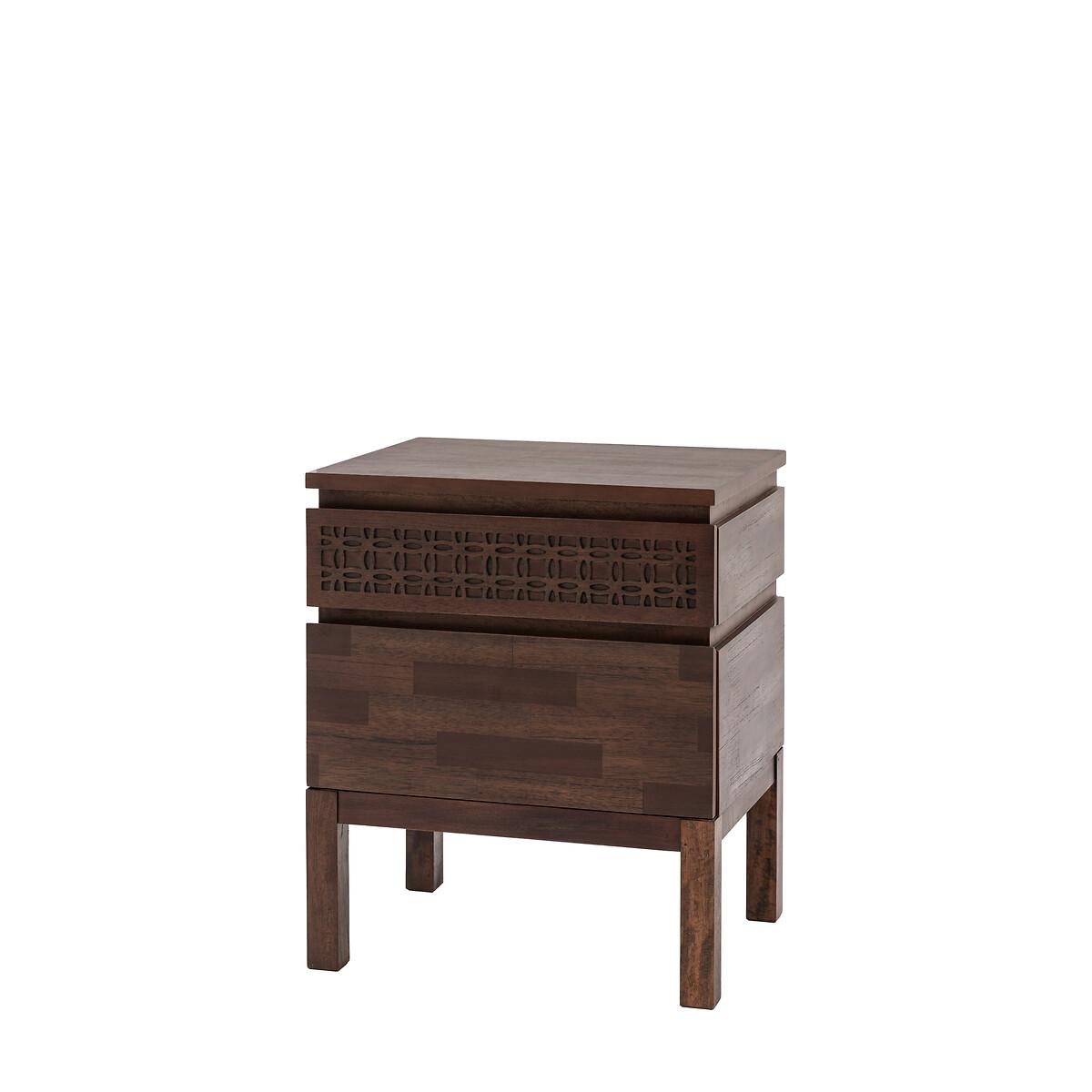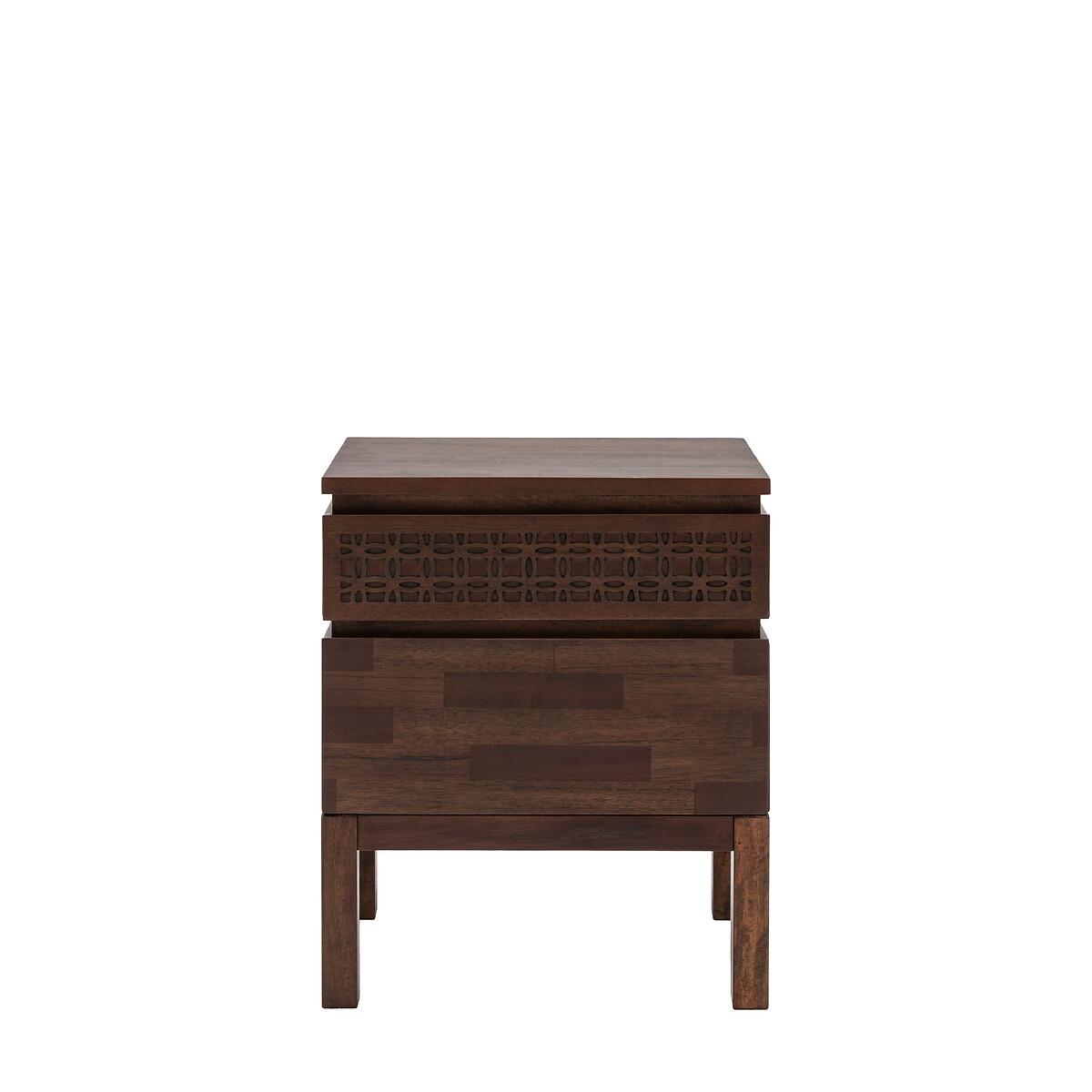 Offering a global traveller look that has a hint of ethnic design detail, this beautiful piece is exciting but timeless in its approach and so can be mixed with modern or classic pieces in an eclectic space. Product Details:• A stunning brown finish• Features 2 drawers• Made from solid mango wood• Assembly required • 1 year manufacturers warranty. Product Composition - Mango / Mindi / Mahogany / MDFProduct Dimensions - 46 cm x 57 cm x 48 cm, Weight 20 kg Drawer dimensions - Drawer 1 - 40 x 30 x 7cm / Drawer 2 - 40 x 30 x 14cm Package Dimensions - 57 cm x 48 cm x 46 cm, Weight 20 kg. This product will be dispatched by one of our trusted suppliers. You’ll be contacted by their selected courier about your delivery. Please note: this product cannot be delivered to all Offshore Islands, Northern Ireland or Republic of Ireland.