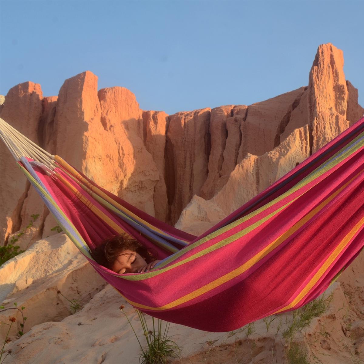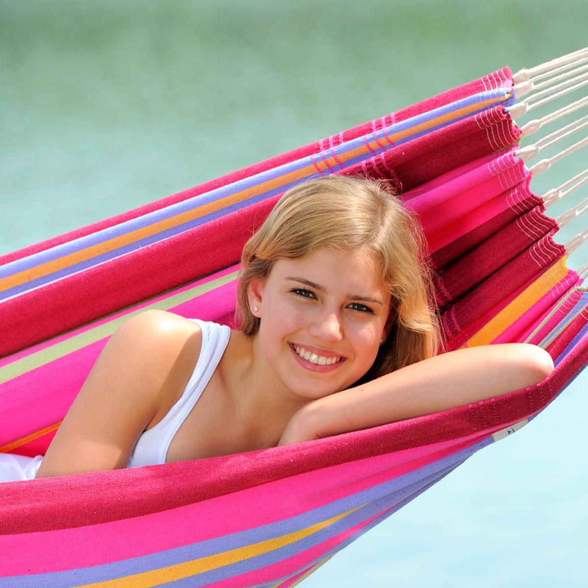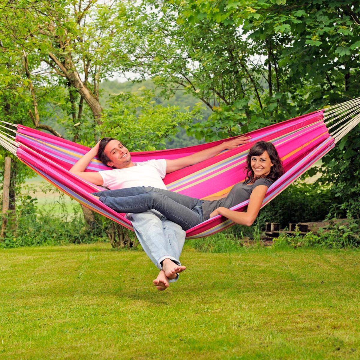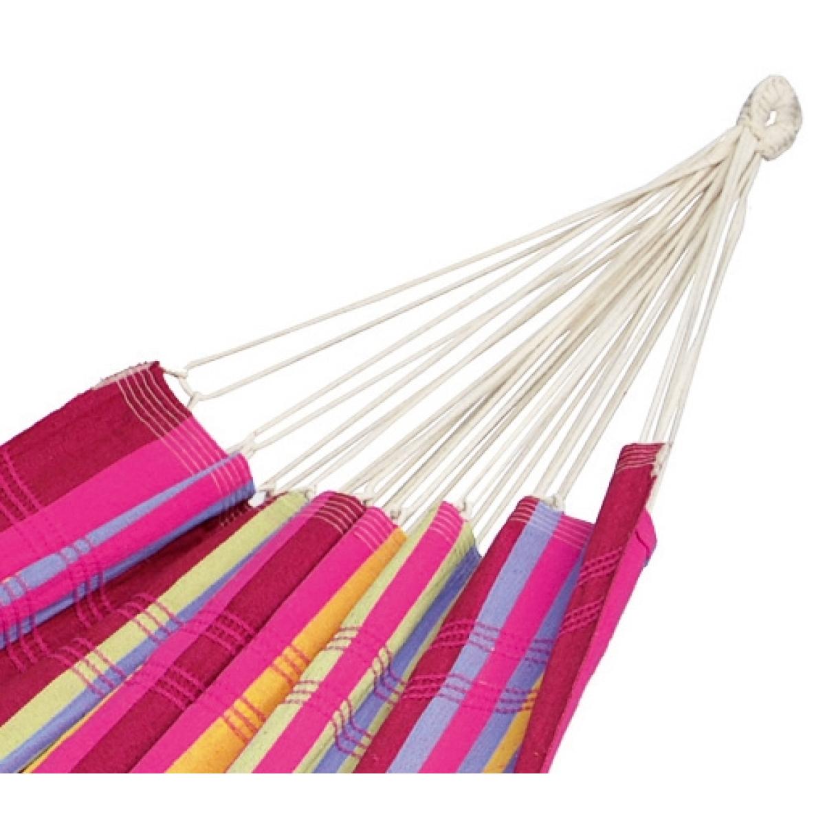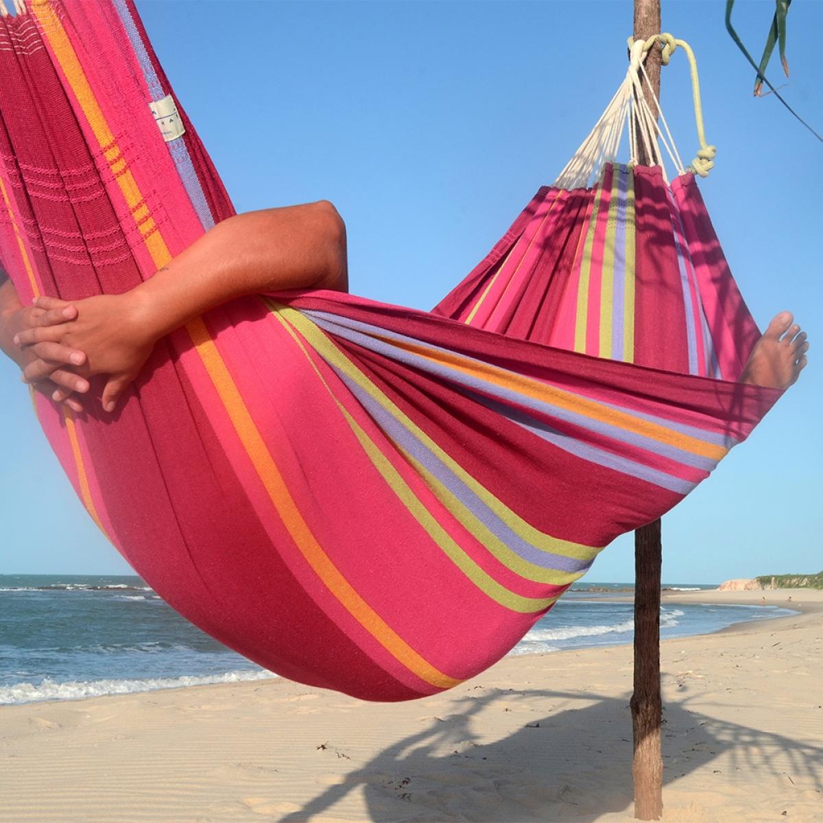 The Amazonas Barbados Double Hammock in Grenadine fabric is the couples hammock of choice. Super-wide, snugly comfortable, very robust and virtually indestructible, the Barbados Double is the perfect indoor & outdoor hammock for relaxing as a couple. Hang it on your balcony, inside your home or set it up for the summer in the garden, you will be thinking of any excuse to chill in your hammock! With Brazilian hammocks like Amazonas hammocks, the wider they are, the more comfortable they are. These unique hammocks are the perfect way to relax and wind down, why not treat yourself or someone else!.