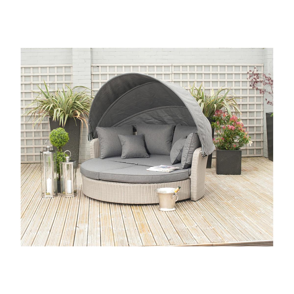The Cayman Day Bed is made from synthetic half round weave, which is durable, weatherproof and UV protected. This outdoor day bed also features a powder coated, aluminium frame, creating a high quality finish. Using this durable and weatherproof material further ensures that this piece is both long lasting and maintenance free. Its space saving design consists of a handy swivelling mechanism, which allows half of the base to be enclosed within the other. All cushions are completely season proof and fire retardant; further ensuring that all details of this set are of the highest quality. A relaxing garden essential. Product Dimensions: L: 180cm, W: 197cm, H: 161cm Packaged Dimensions: Weight: 47kg, L: 200cm, W: 107cm, H: 78cm Please note this item is a large piece of furniture that will require some self assembly. Please ensure you have space to receive delivery. This product will be dispatched by one of our trusted suppliers. You’ll be contacted by their selected courier about your delivery. This item can be delivered to all UK Mainland postcodes with the exception of the following postcodes starting with; AB, BT, DD, IV, KW1-14, PA21-38, PH, TR17-27 & ALL ROI.