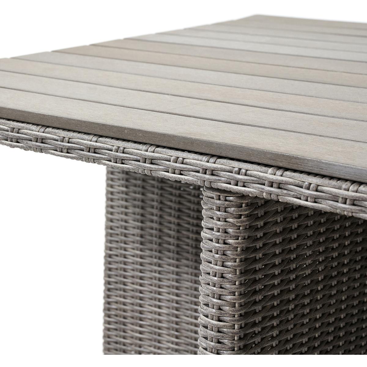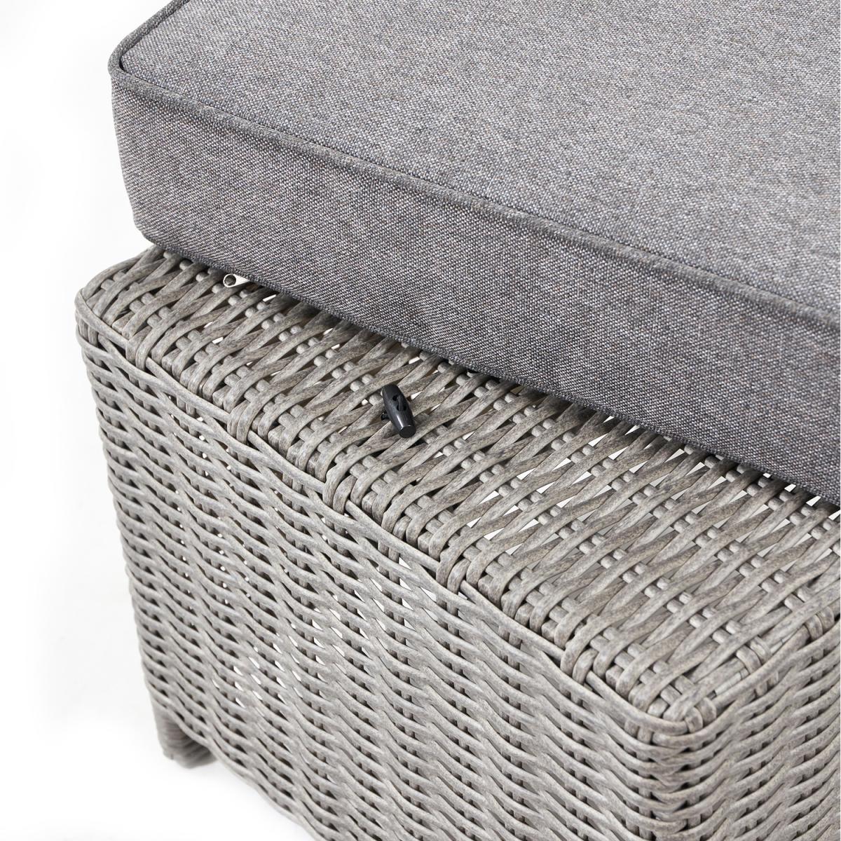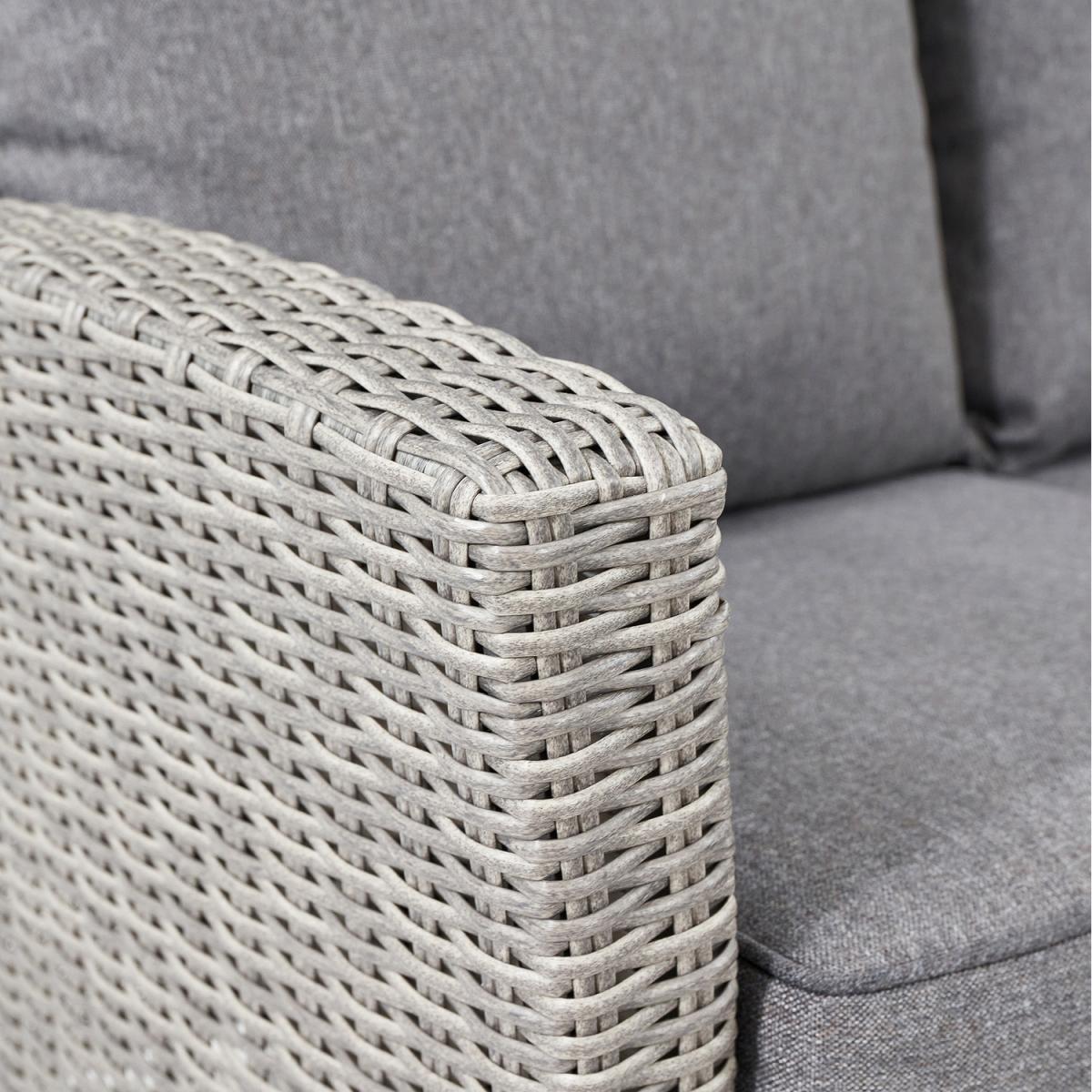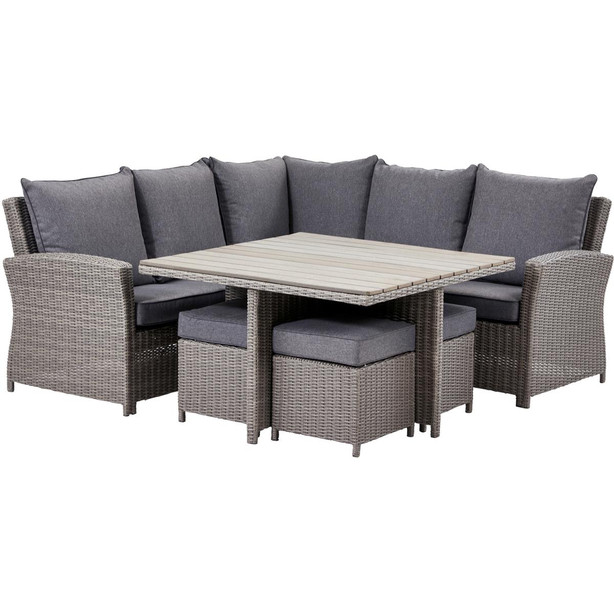 The Slate Grey Barbados Square Corner Seating Set with Ceramic Top cleverly offers seating for the whole family, with a neat and stylish design. This set comprises of a corner sofa arrangement, and 4 footstools around a square dining table. The set is crafted from a synthetic half round rattan weave ensuring a modern look, and durable weather resistant finish. This outdoor corner set also features a powder-coated aluminium frame, which ensures its high-quality and robustness. The stylish table is topped with premium ceramic slats for a heavy duty, quality finish. The season proof, fire retardant cushions are water repellent, allowing the water to run off the cushion. In the rare event that any moisture does penetrate the outer fabric there is a ventilation section in each cushion which allows it disperse.