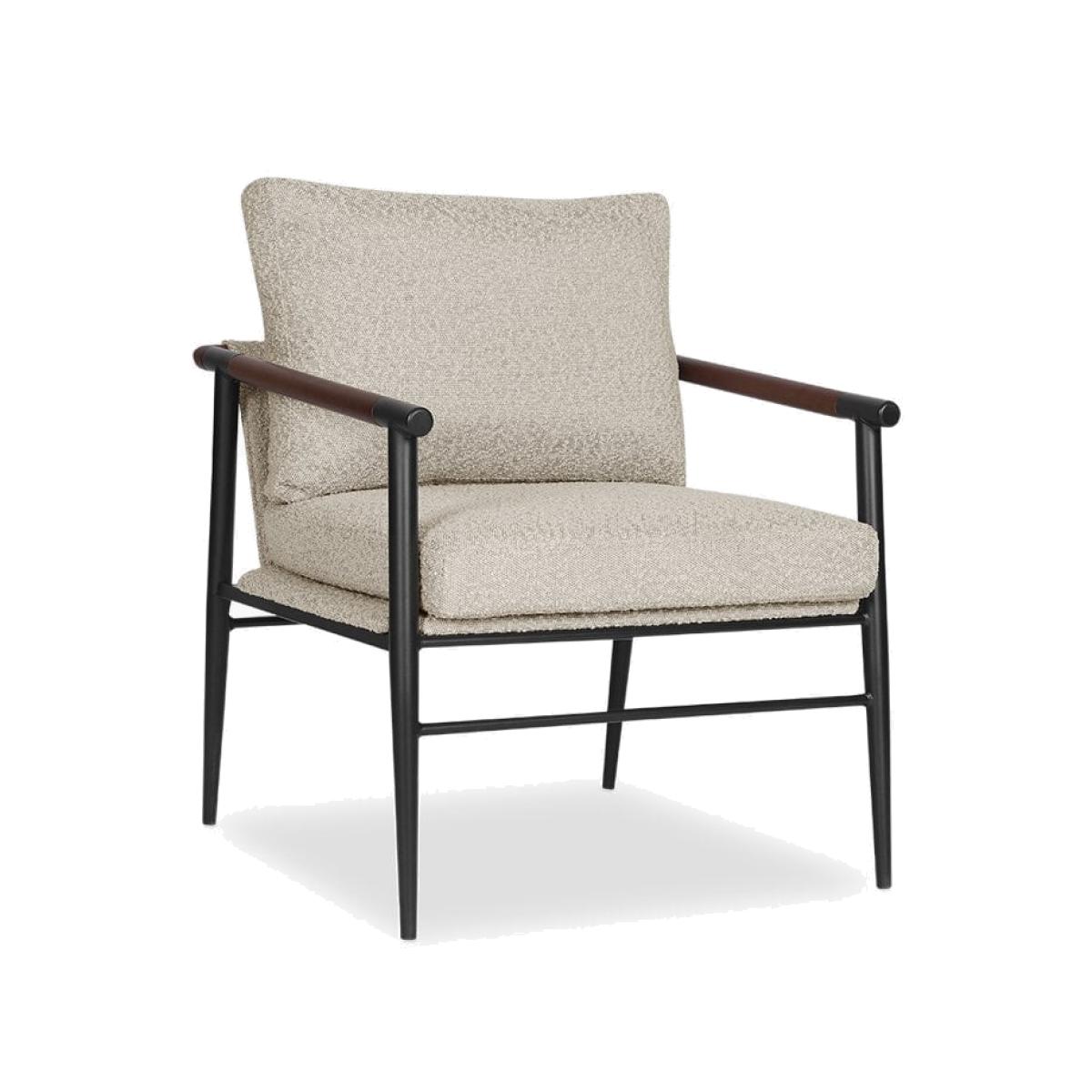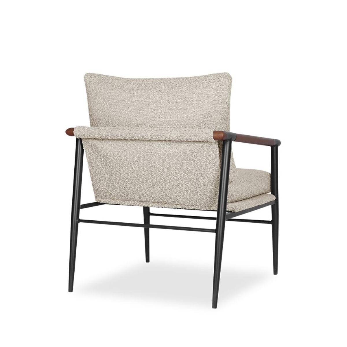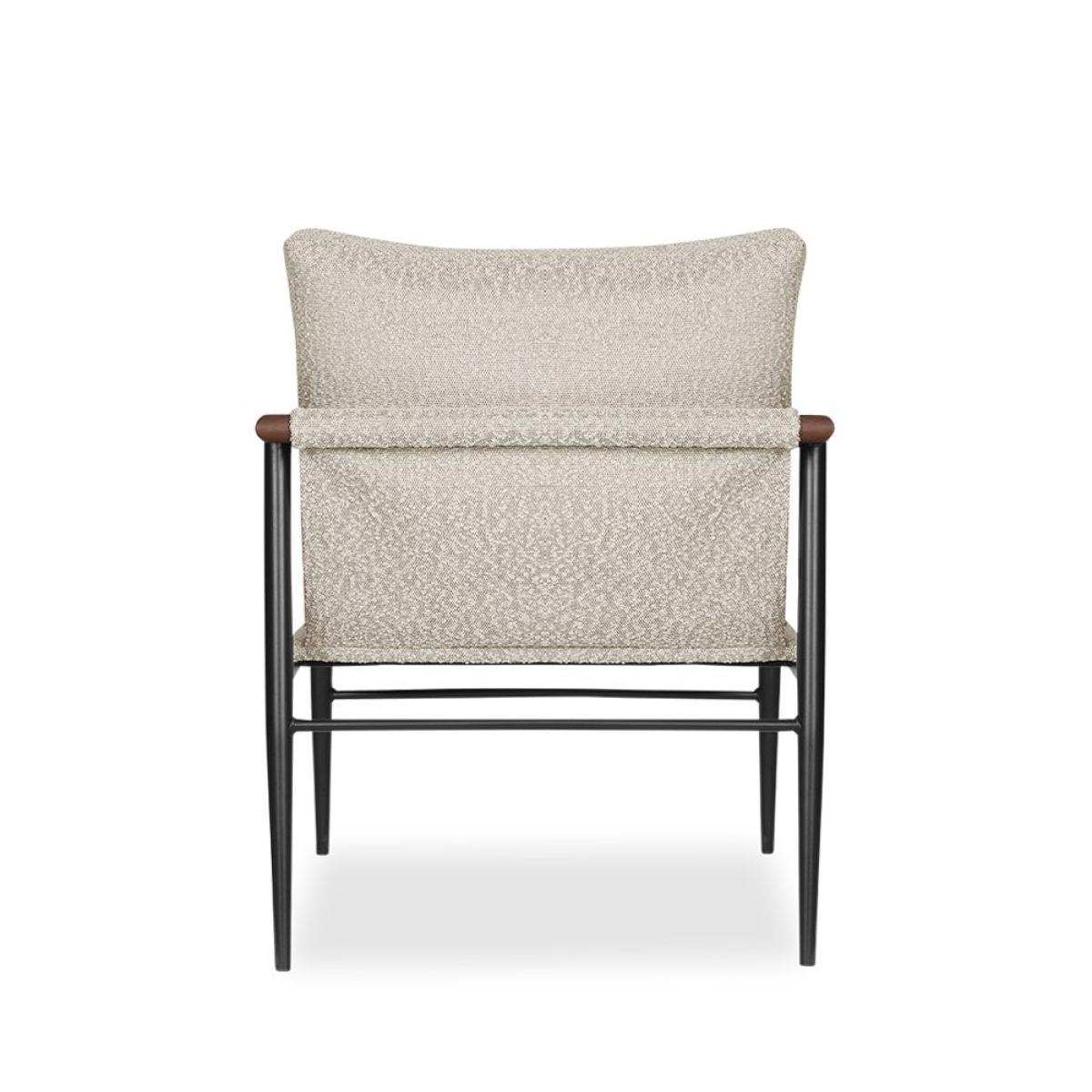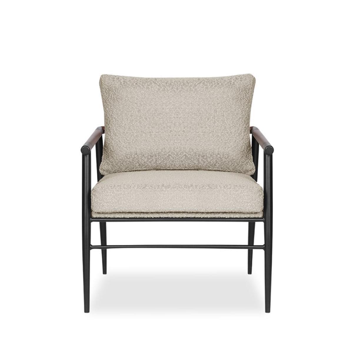 Bring a touch of mid-century modern into your living room with the Barbican Boucle Armchair. Constructed from a streamlined metal frame accented with wooden armrests, this classic piece of industrial-inspired furniture is upholstered in a sustainable speckled stone boucle for character and comfort. Deep-set seat, relaxed lounge vibes; welcome to the world of relaxation. For a rich depth of colour and unique softness, our boucle used in this chair is not only of the highest quality but it is made from recycled PET yarns so it is kinder to the environment too.
