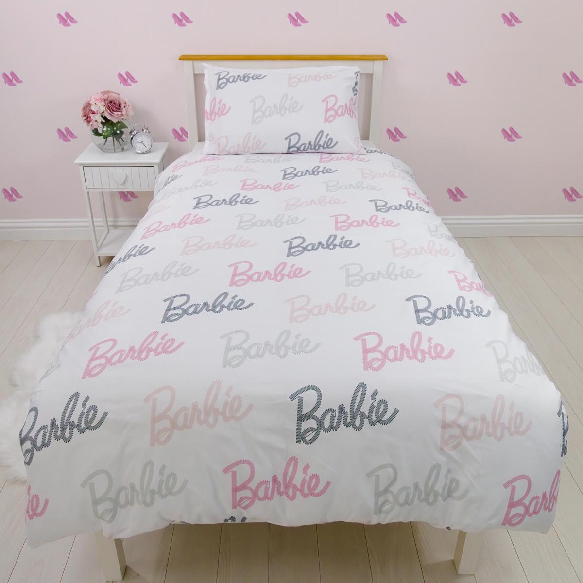 Barbie Figures Duvet Cover and Pillowcase Set - White