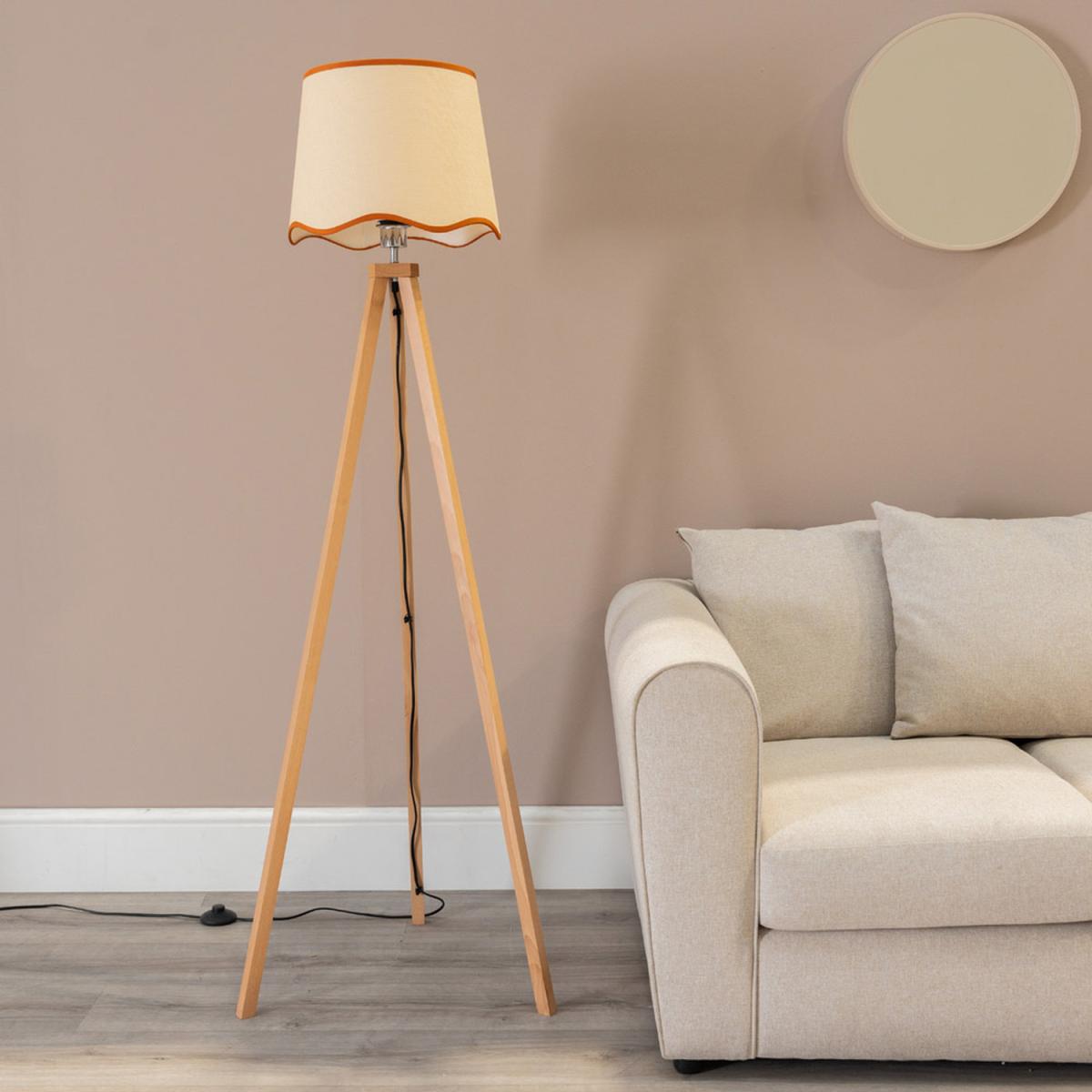 The light your modern makeover has been missing, the Barbro wooden tripod floor lamp is effortlessly elegant and super stylish. With a light wood colour, this sleek tripod lamp fits into a huge variety of interior styles. Its topped with a soft natural colour scalloped shade which has a trim in either black, rust, or white and there's a 1.8m cable running from plug to lamp. The lamp has an in-line foot switch, too, so its user (and back) friendly!