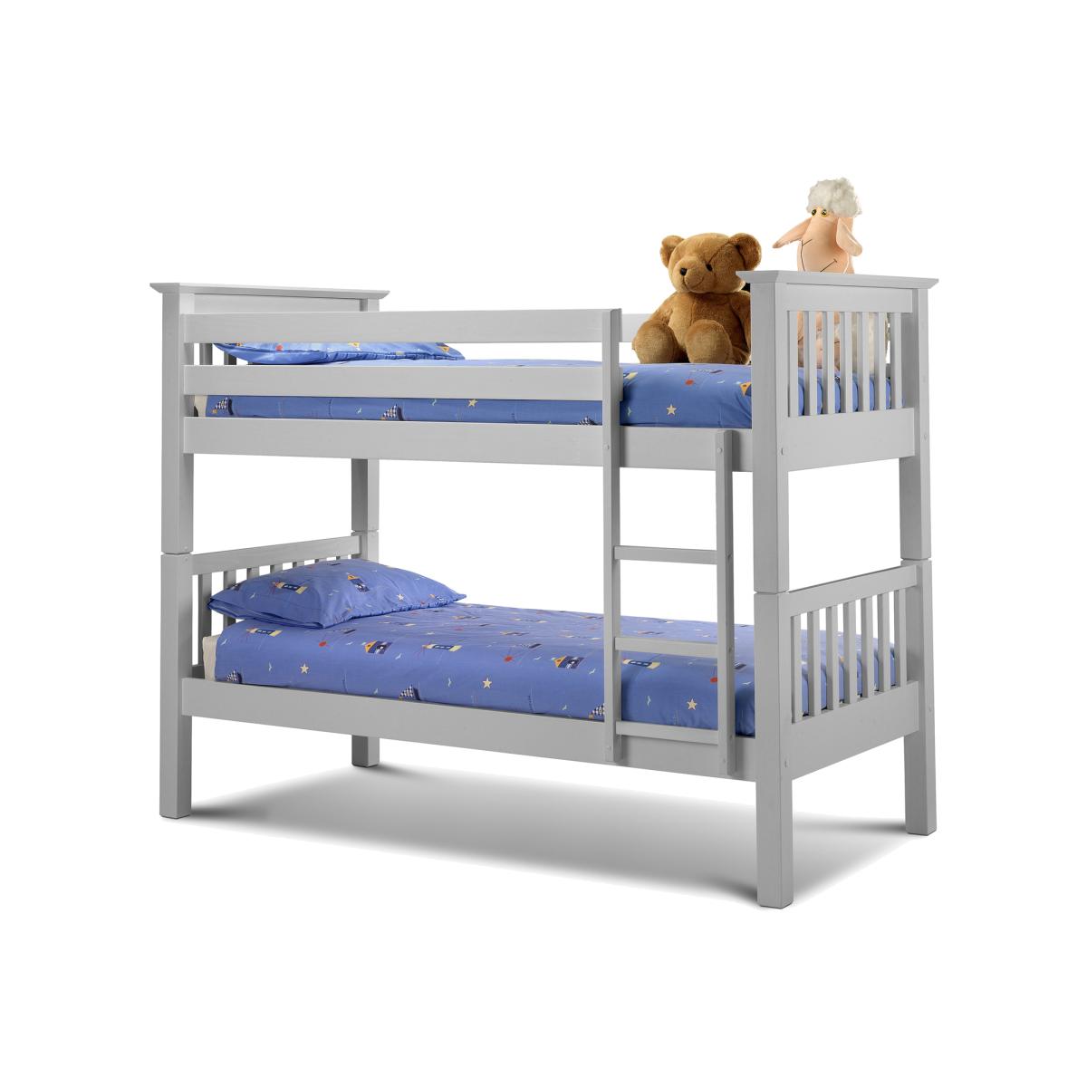 A Lacquered Bunk Bed made from MDF with Solid Pine Slats. The Barcelona bunk is very resilient, even for the most active of children. Due to Bunk Bed Safety Regulations, only the Premier, Platinum or Comfy Roll Mattress is suitable for use on the upper bunk.