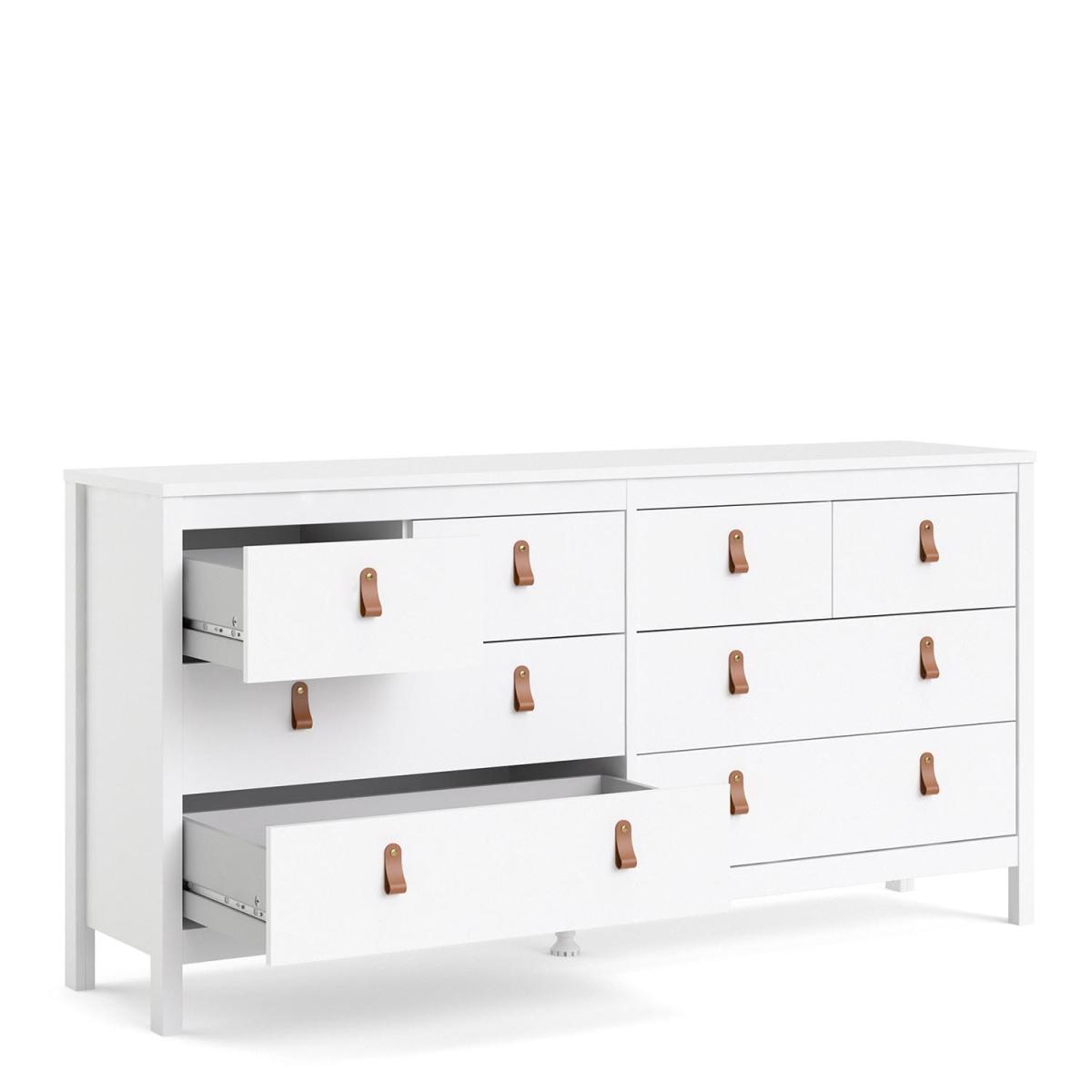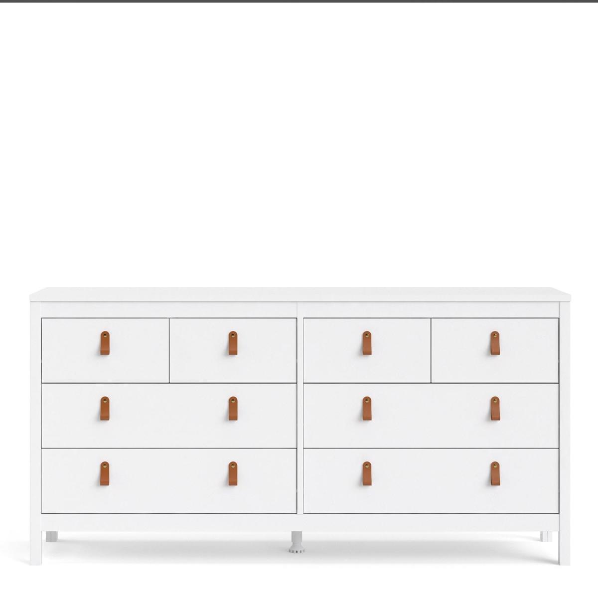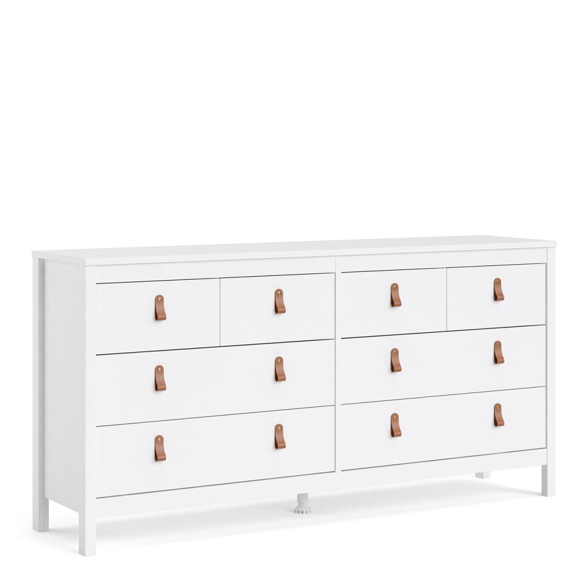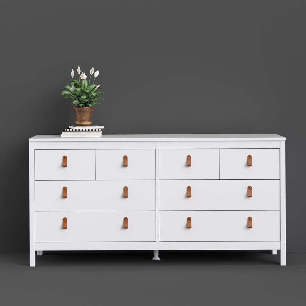 The Barcelona Double Dresser has a striking, modern design complete with brown leather tab handles for a unique look in your bedroom. Featuring plenty of storage with the 8 drawers, the set is finished with a high-quality laminated board that's resistant to damage and scratches, moisture, and high temperature.