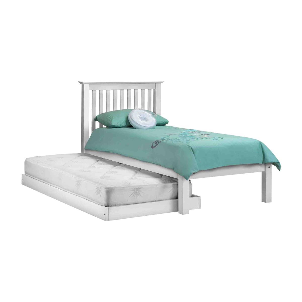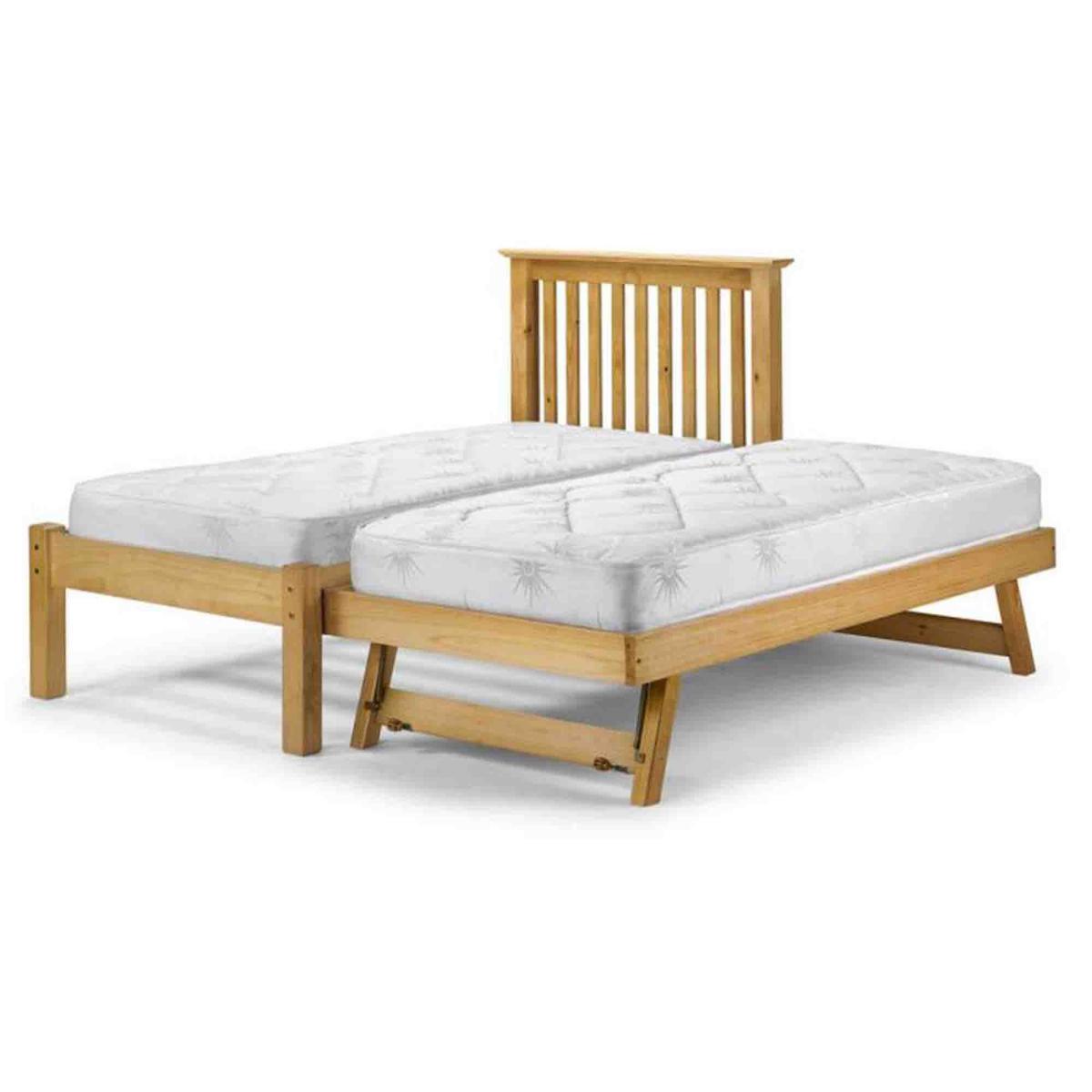 The Barcelona Hideaway Bed is a contemporary shaker style bed frame with a pull out guest bed that raises to the same level as the main bed frame. This high quality, adaptable bed is perfect for sleepovers or overnight guests. It also saves valuable space and is constructed from solid pine and MDF, ensuring outstanding build quality. Please note: Mattresses are not included. Pine image is for reference and colourway is not stocked. Mattress depth for the trundle should not exceed 18cm.