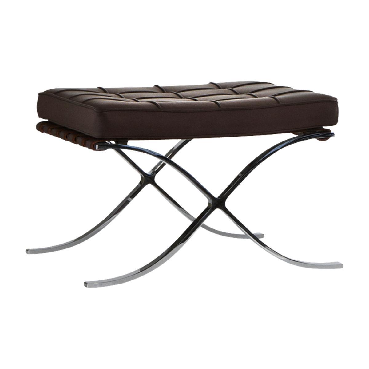 Specially designed by Lilly Reich and Ludwig Mies van der Rohe in 1929 to accompany the coordinating Barcelona Chair, the dark brown Barcelona Ottoman is meticulously crafted by Knoll. This Barcelona Ottoman is an icon of modern design and whether paired with its coordinating chair or displayed as a single piece, it is sure to provide comfort and style in any room. This sophisticated dark brown edition of the Barcelona Ottoman is upholstered with Velo leather, which provides a delicate grain and texture with a breathable protective finish. A timeless and renowned design, the Barcelona Ottoman would be the perfect piece to add sophistication to your space. The ottoman's authenticity is guaranteed by Knoll's logo and the designer's signature, tastefully engraved on the right leg.