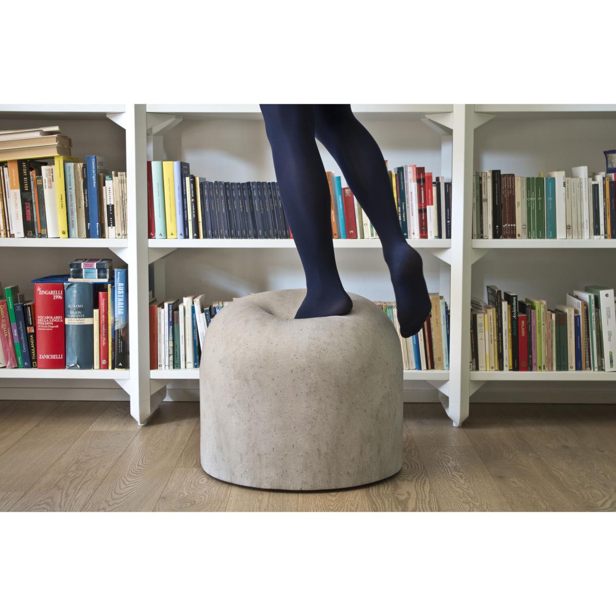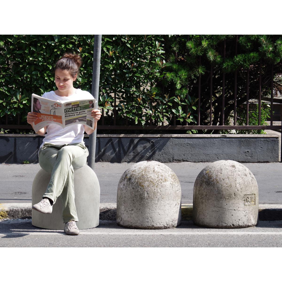 A small, upholstered piece of furniture conceived as a tribute to the city of Milan, its shape and texture recall the concrete bollards prevalent throughout the city that look like a « Panettone », a traditional holiday cake. The allusion is ironically applied to the notion of comfort: a notoriously hard, uncomfortable object becomes soft and inviting, therefore, attractive.