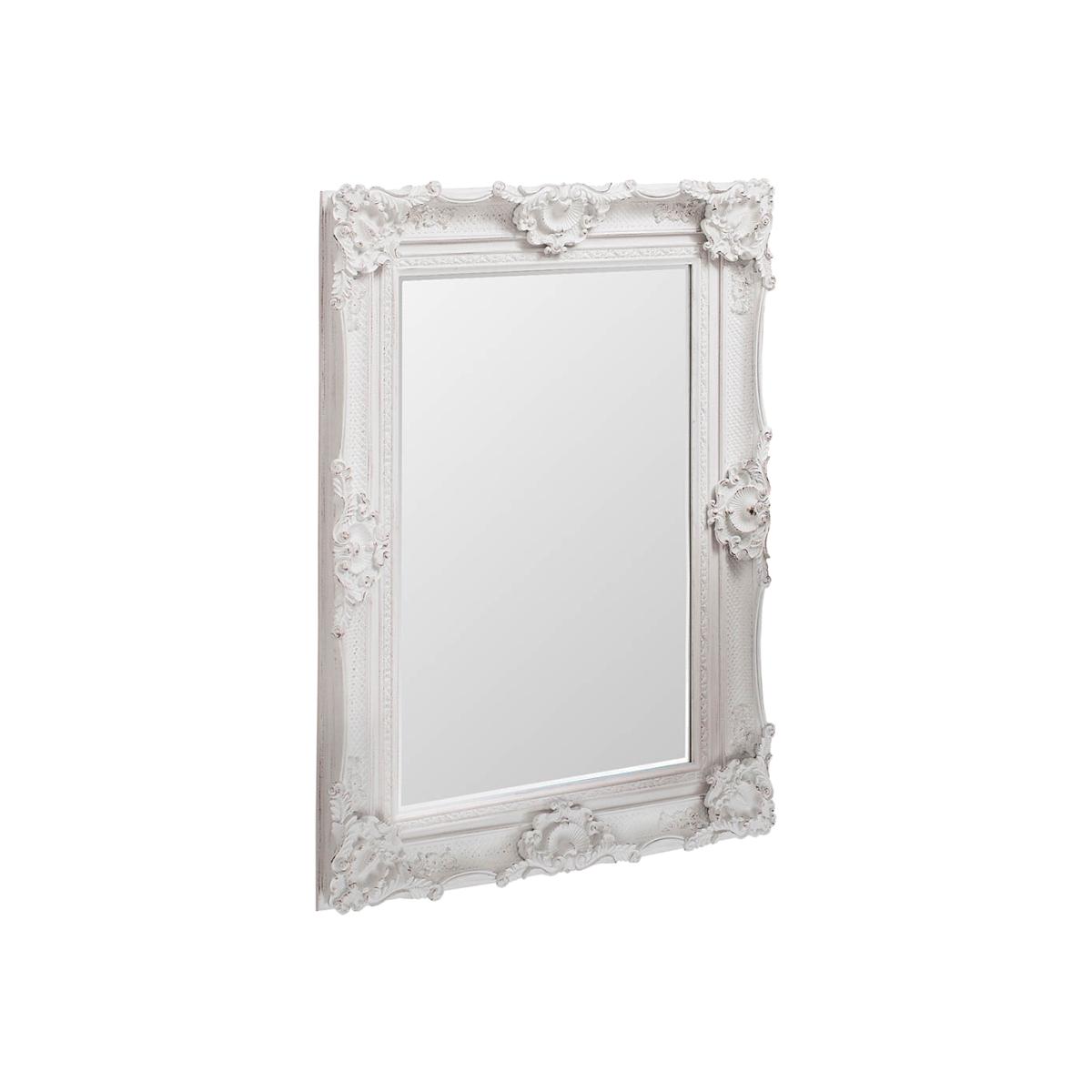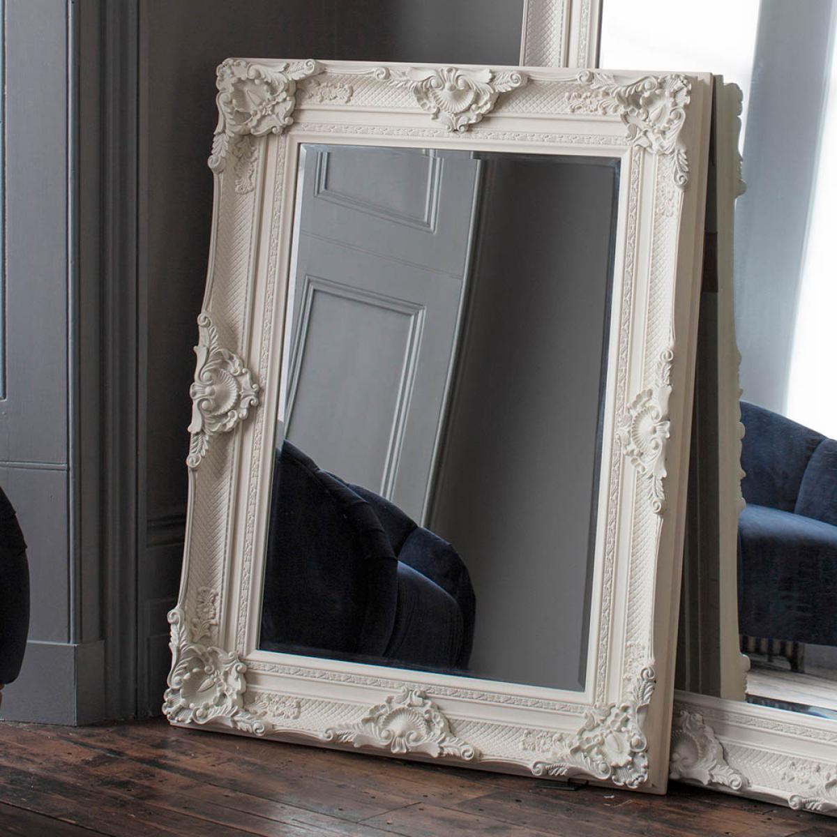 Fabulous statement mirror in a lightly aged, matt white finish. Shape: Rectangle. Material: Glass, Resin, Wood. Colour/Finish: Cream. Mount Type: Wall.