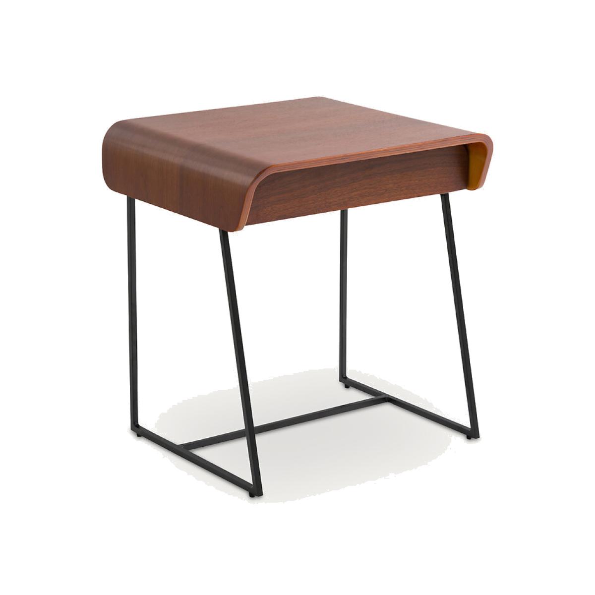 Designed by Emmanuel Gallina exclusively for AM.PM. Contemporary and elegant, this bedside has a sliding drawer. Product Details • Plywood top and tiers with walnut veneer • Black metal feet. Dimensions • L.45 x D.40 x H.49cm • WOOD FROM SUSTAINABLY MANAGED FORESTS. FSC® certified wood comes from forests that are environmentally, socially and economically well managed.