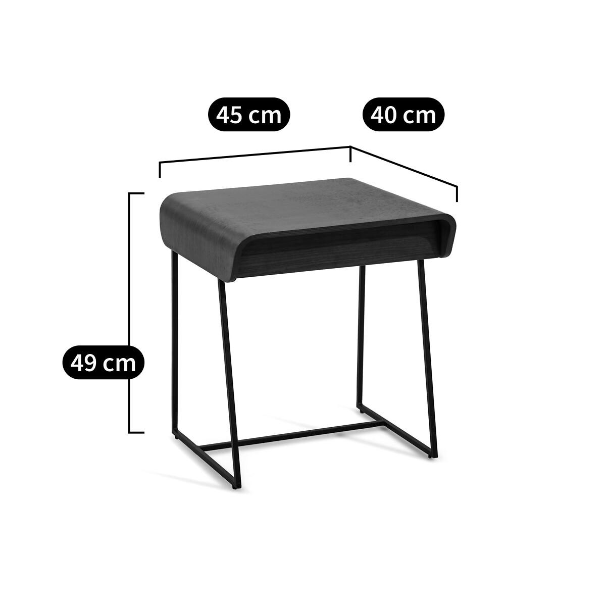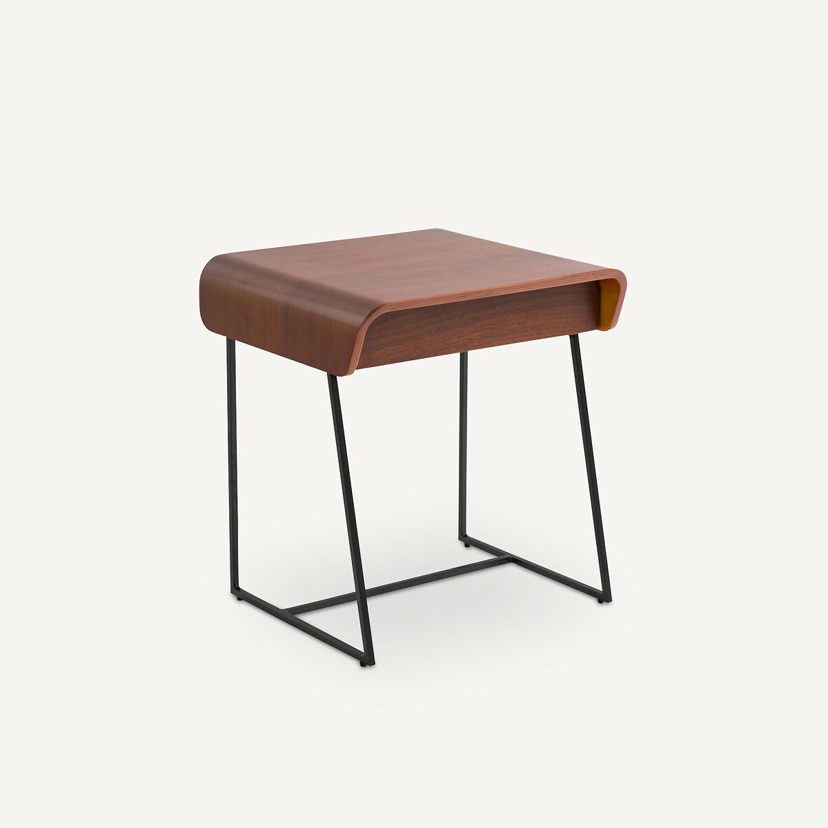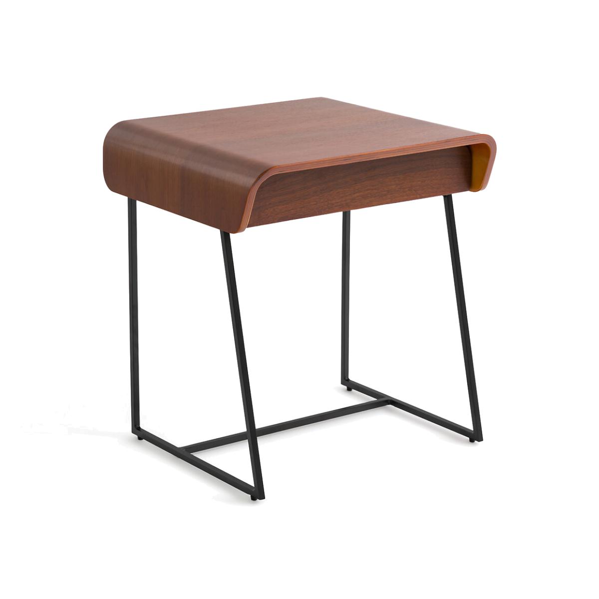 Designed by Emmanuel Gallina exclusively for AM.PM. Contemporary and elegant, this bedside has a sliding drawer. Product Details • Plywood top and tiers with walnut veneer • Black metal feet. Dimensions • L.45 x D.40 x H.49cm • WOOD FROM SUSTAINABLY MANAGED FORESTS. FSC® certified wood comes from forests that are environmentally, socially and economically well managed.