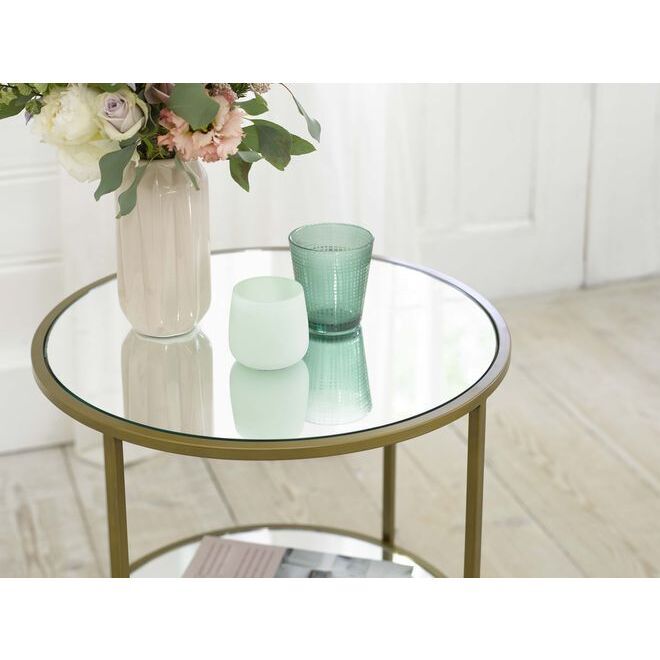 Introduce a glamorous touch into your home with the Art-Deco inspired Bardot side table, exclusive to sofa. com. Featuring an elegant mirror glass top and shelf with a brass finish frame, Bardot is not just a practical addition to your home but it will also look stylishly chic in your living room or bedroom.