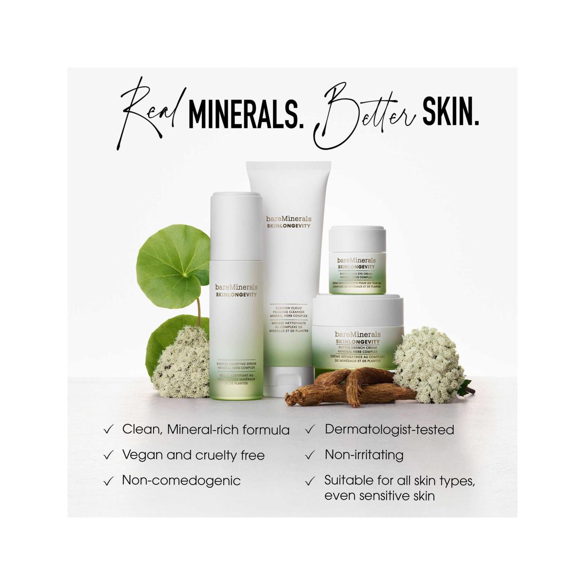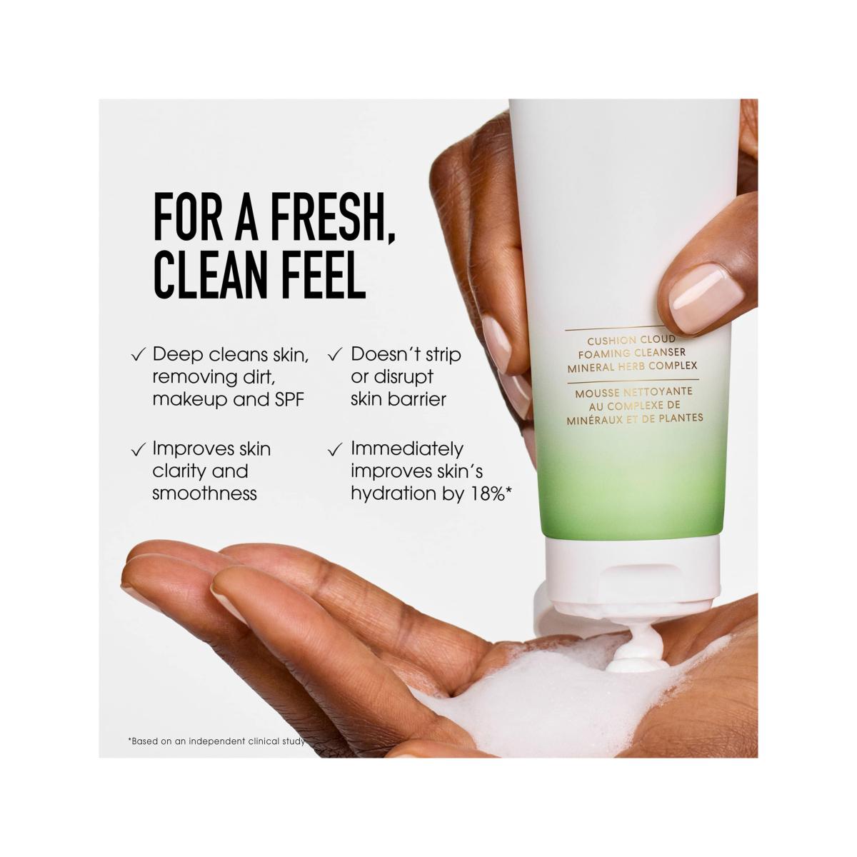 Real Minerals. Better Skin. A gentle cream-to-foam cleanser with exclusive Mineral Herb Complex that deeply cleanses, removes makeup and sunscreen, while strengthening skin barrier*. This luxurious cleanser deeply purifies without stripping moisture from skin immediately and after one day**, leaving skin smoother *and more nourished* after one use. It improves hydration by 18% immediately*, while enhancing barrier function immediately and overtime*, brightness, and clarity both immediately and over time*.Clinically proven*: 100% of users saw immediate improvement in skin's hydration. Immediately improves skin's hydration by 18%. Improves skin’s brightness and clarity immediately and overtime. Consumer Tested**: 100% of users said cleanser leaves skin feeling clean and fresh after one day. 100% of users said cleanser feels non-irritating and gentle on skin after one day. *Based on an independent clinical study **Based on an independent consumer study