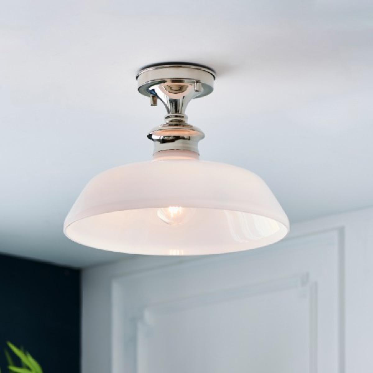 Traditional ceiling pendant featuring polished nickel finish. An elegant addition to your home, the Barford semi flush light will complement both modern and traditional interiors. Featuring a opal shade and polished nickel finish, this ceiling light will suit best in kitchens and hallways..