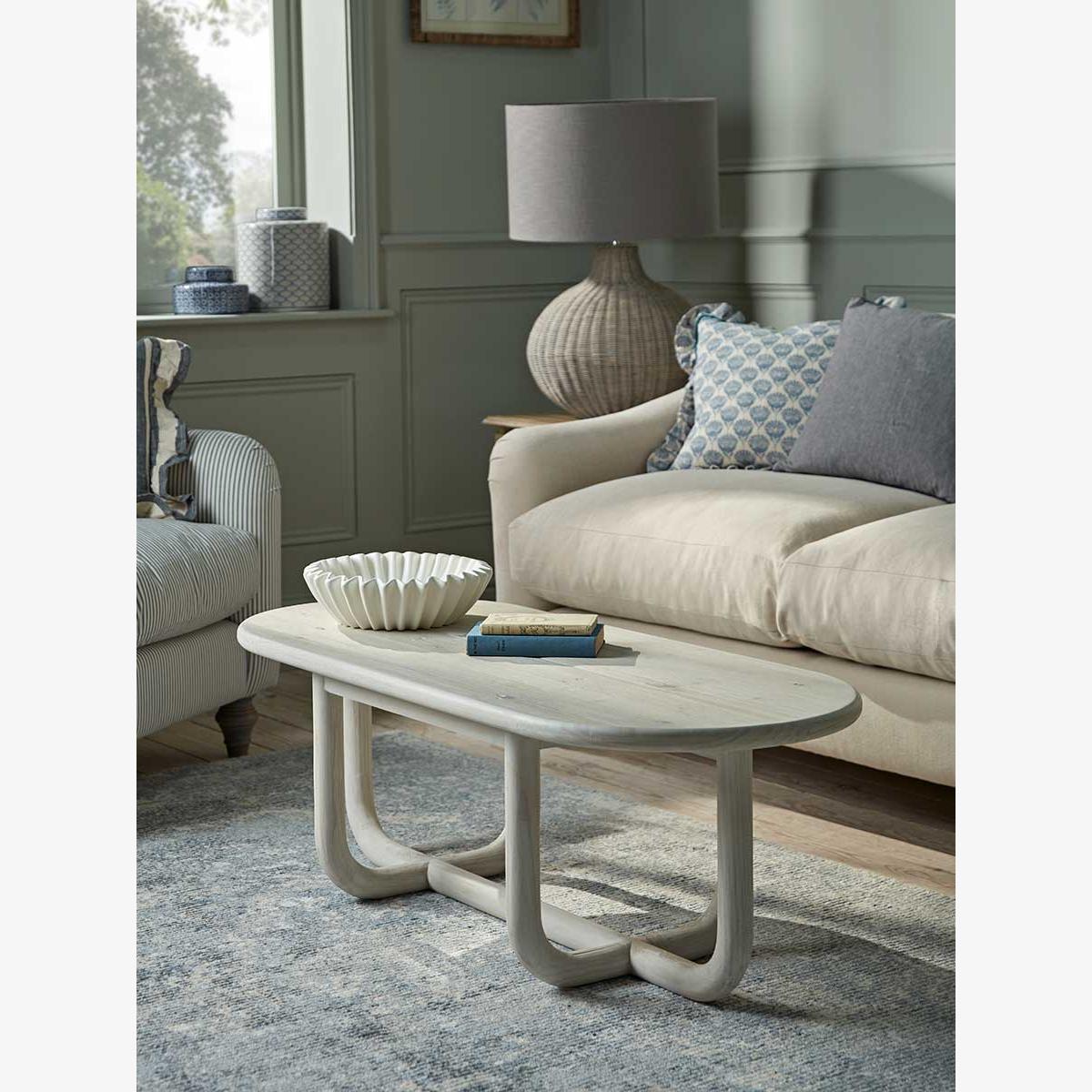 Marrying a simple combination of neutral tones and curved lines, our Bari Coffee Table features soft and gentle table legs that curve beneath the table into a cross shape, perfect for a home that is inspired by modern interiors. With an oblong shape table top, this coffee table is the perfect height and size for placing in front of your sofa and enjoying a relaxing and restorative home. Also availabe as a console table.
