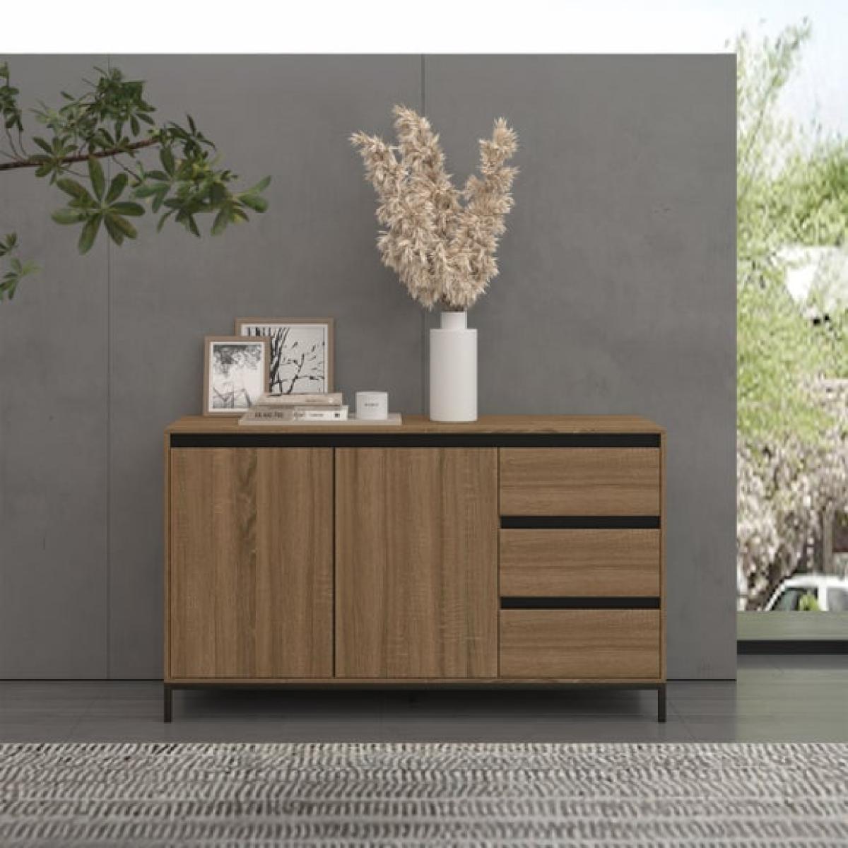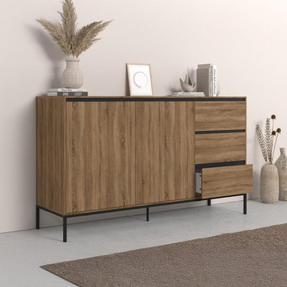 * Wooden sideboard * Multiple storage options * Oak effect finish With its generous proportions and natural oak effect finish, the Bari sideboard is designed to elevate everyday storage. Ideal for larger rooms, it provides ample surface space for decorative accents and fully extendable drawers for hidden organisation.