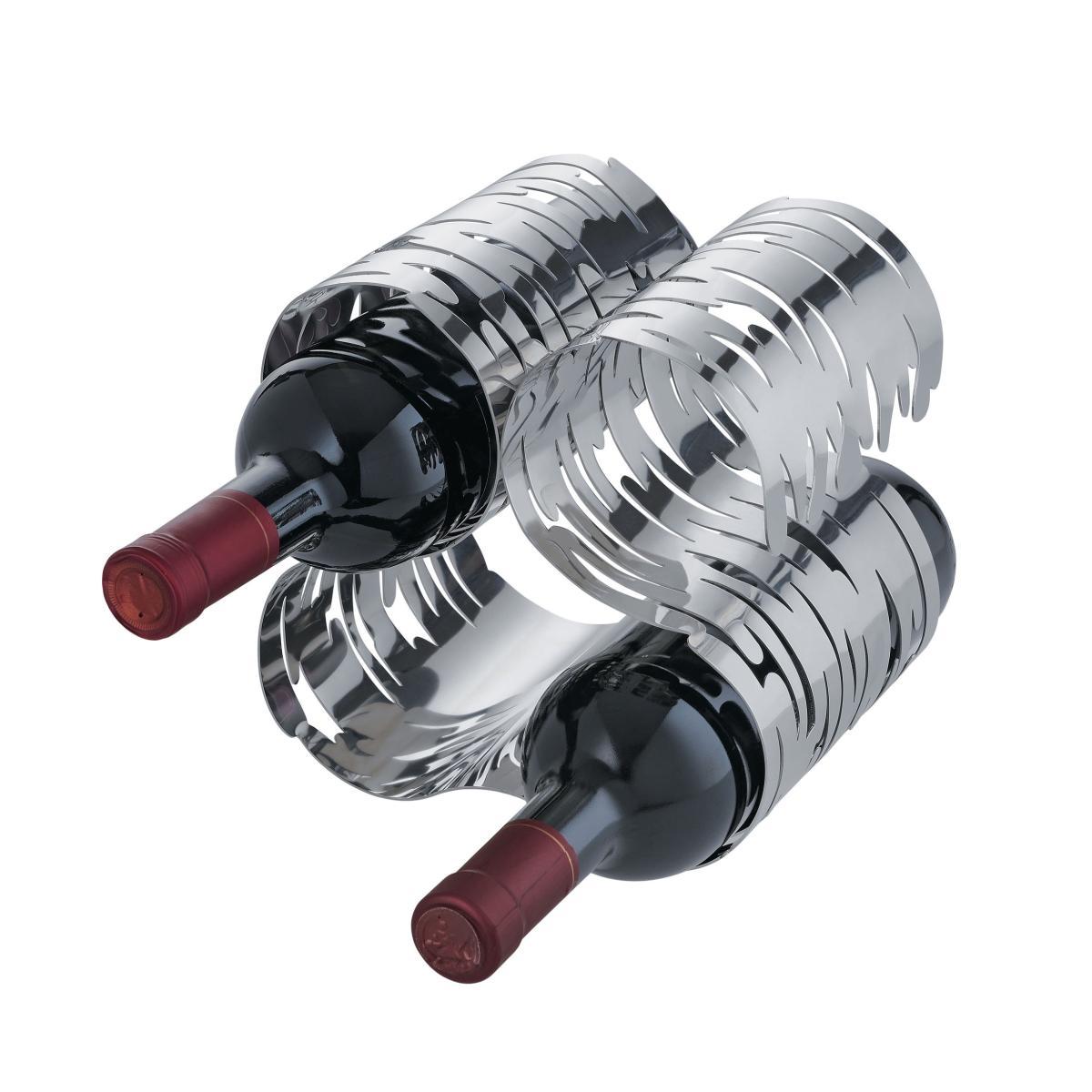 Alessi's Bark collection is inspired by nature. The finely cut steel recalls the bark of the trees and gives this collection a great lightness. The harmony of the solid and the void rests the gaze and confers on Bark a lot of elegance. The bottle holder Barkcellar is wrapped around the bottles and seems to hold them delicately. Thanks to the special features of its structure and the expressive power of its design, this object plays the stars, inserting itself in the space of the kitchen as a decoration element of foreground. Barkcellar can hold up to 4 bottles.