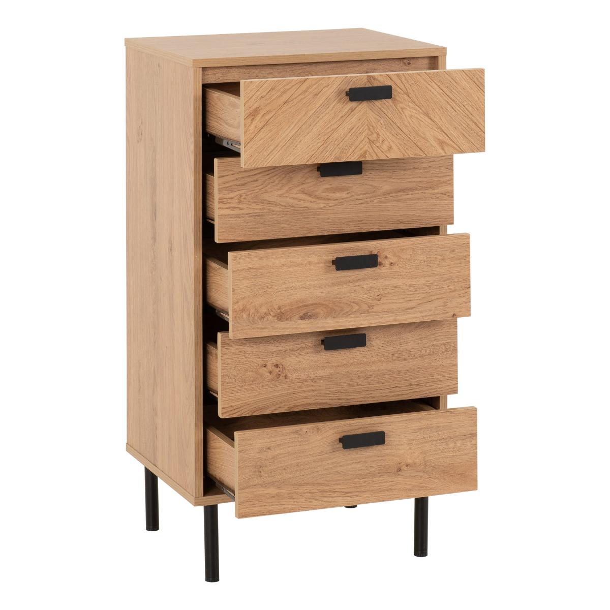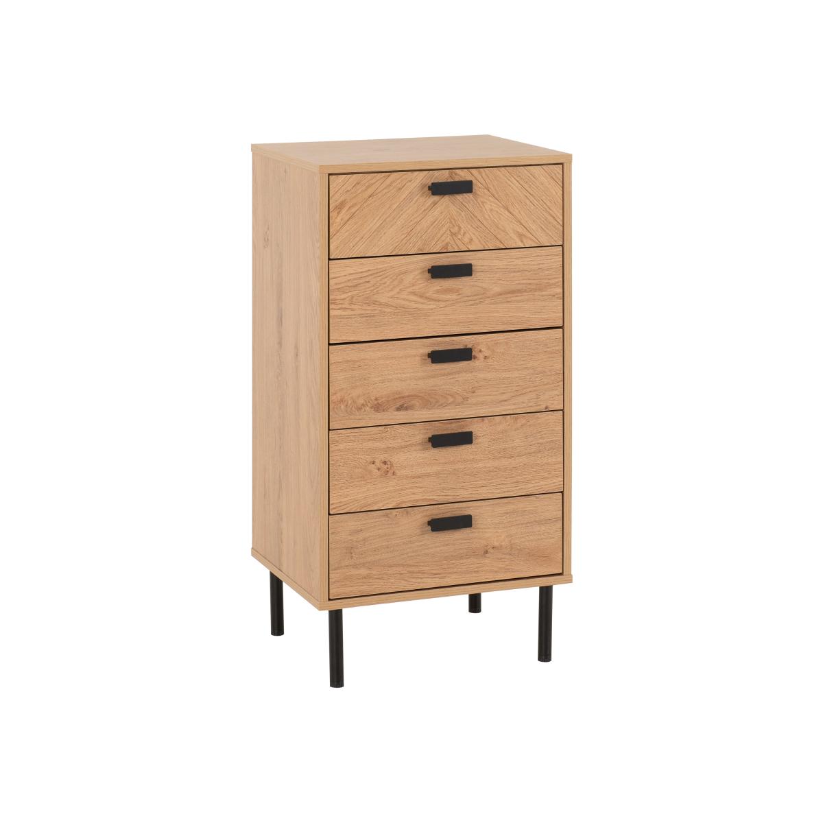 Barker 5 Drawer Narrow Chest, Oak Effect Oak