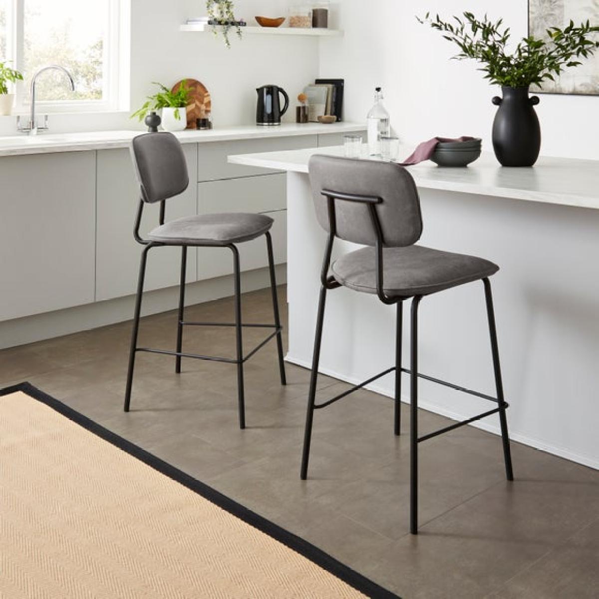 I love the Barker counter height barstool for its sleek, contemporary look and practical faux leather finish, which is easy to maintain and resistant to spills. It works particularly well in modern, minimalistic kitchens or breakfast bars where a streamlined aesthetic is desired. When styling, consider pairing it with a light wood or monochrome scheme to let the stool stand out, or go bolder with colourful accessories for a vibrant touch. Practical tips include using it with a high worktop or breakfast bar, and adding cushions or throws if extra comfort is needed. Its neutral grey makes it versatile and a great choice for both casual dining areas and more sophisticated kitchen spaces.