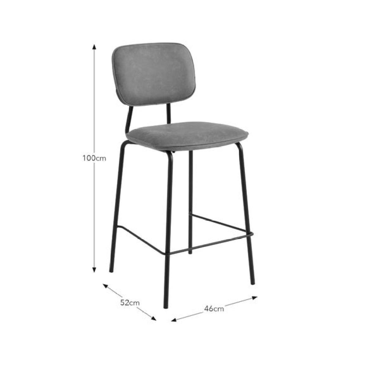 * Upholstered barstool * Trendy faux leather fabric * Metal legs Add a touch of modern comfort to your kitchen or breakfast bar with this sleek barstool from the Barker range. Upholstered in smooth faux leather, available in rich brown, cool grey, or earthy olive, it offers a stylish seating solution to suit any décor. The gently curved seat and supportive backrest provide comfort for everyday use, while the sturdy black metal legs add a contemporary edge.