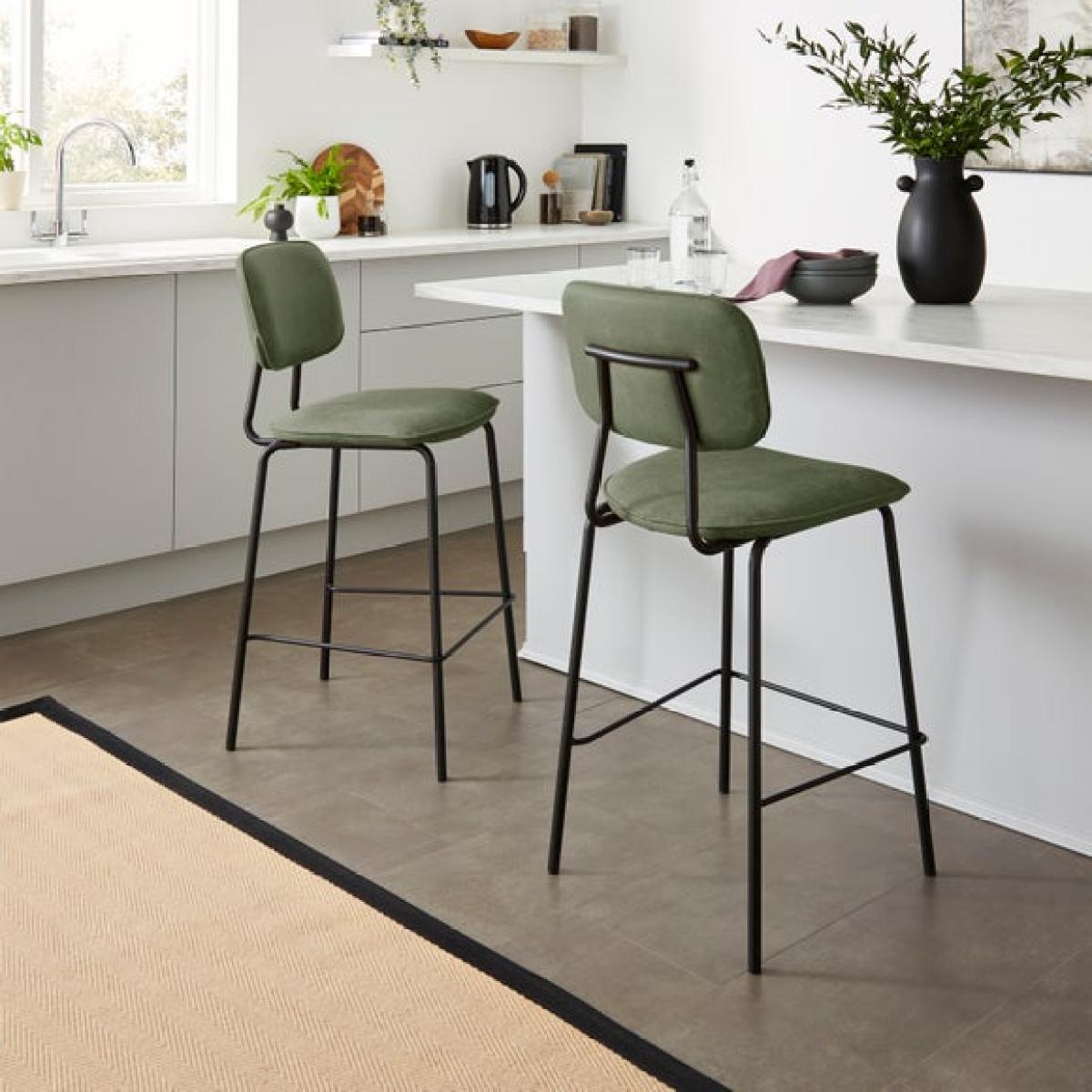 I love this barstool for its simple, clean lines and versatile style. The faux leather seat adds a touch of sophistication while being practical and easy to maintain, making it perfect for busy kitchens or breakfast bars. It works well in contemporary or minimalist interiors, but its understated design can also complement more eclectic or industrial spaces. For styling tips, consider pairing it with a sleek marble or wooden breakfast bar, or even mixing it with metals for an industrial look. Adding a pop of colour through cushions or accessories can also help personalise the space without compromising on the modern aesthetic.