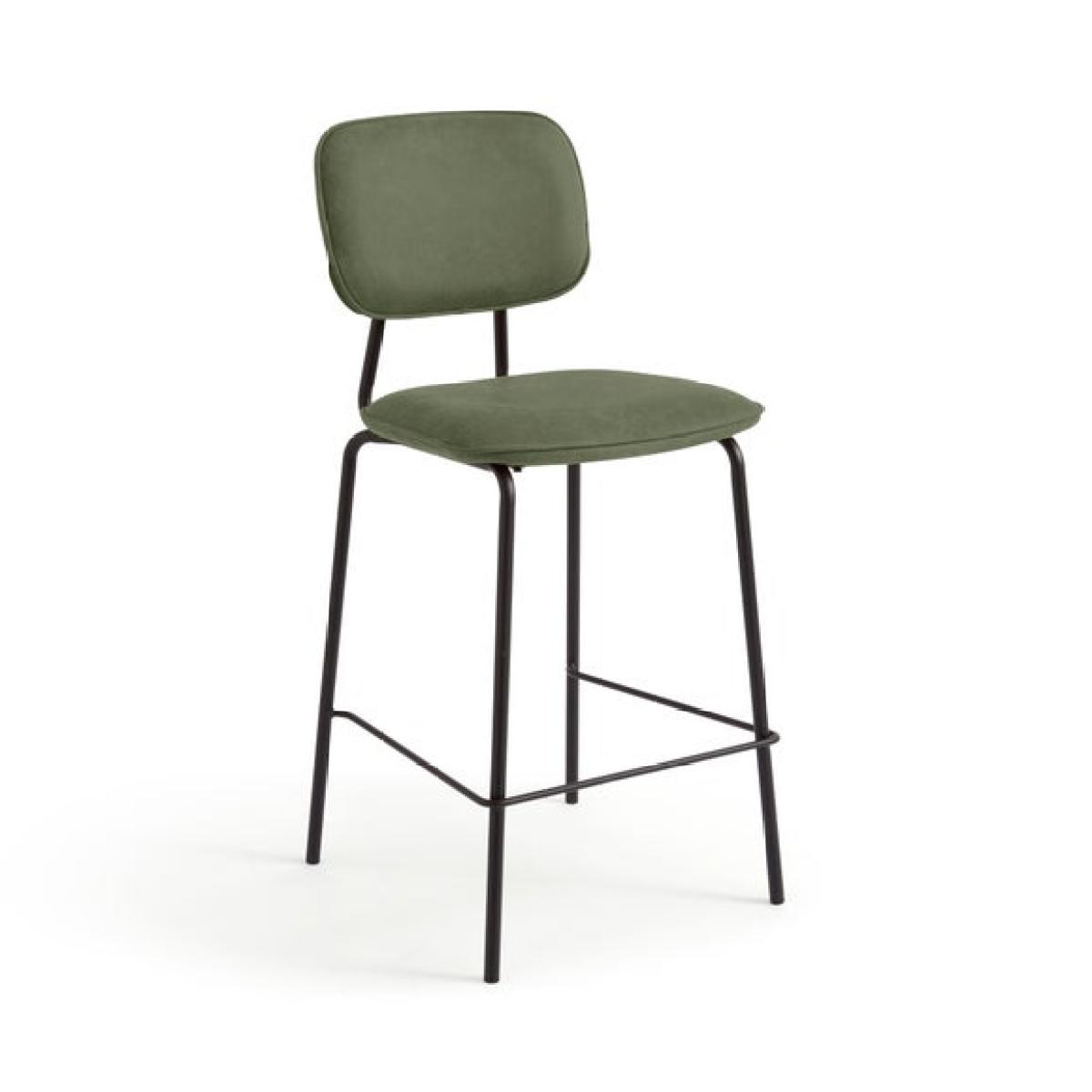 * Upholstered barstool * Trendy faux leather fabric * Metal legs Add a touch of modern comfort to your kitchen or breakfast bar with this sleek barstool from the Barker range. Upholstered in smooth faux leather, available in rich brown, cool grey, or earthy olive, it offers a stylish seating solution to suit any décor. The gently curved seat and supportive backrest provide comfort for everyday use, while the sturdy black metal legs add a contemporary edge.