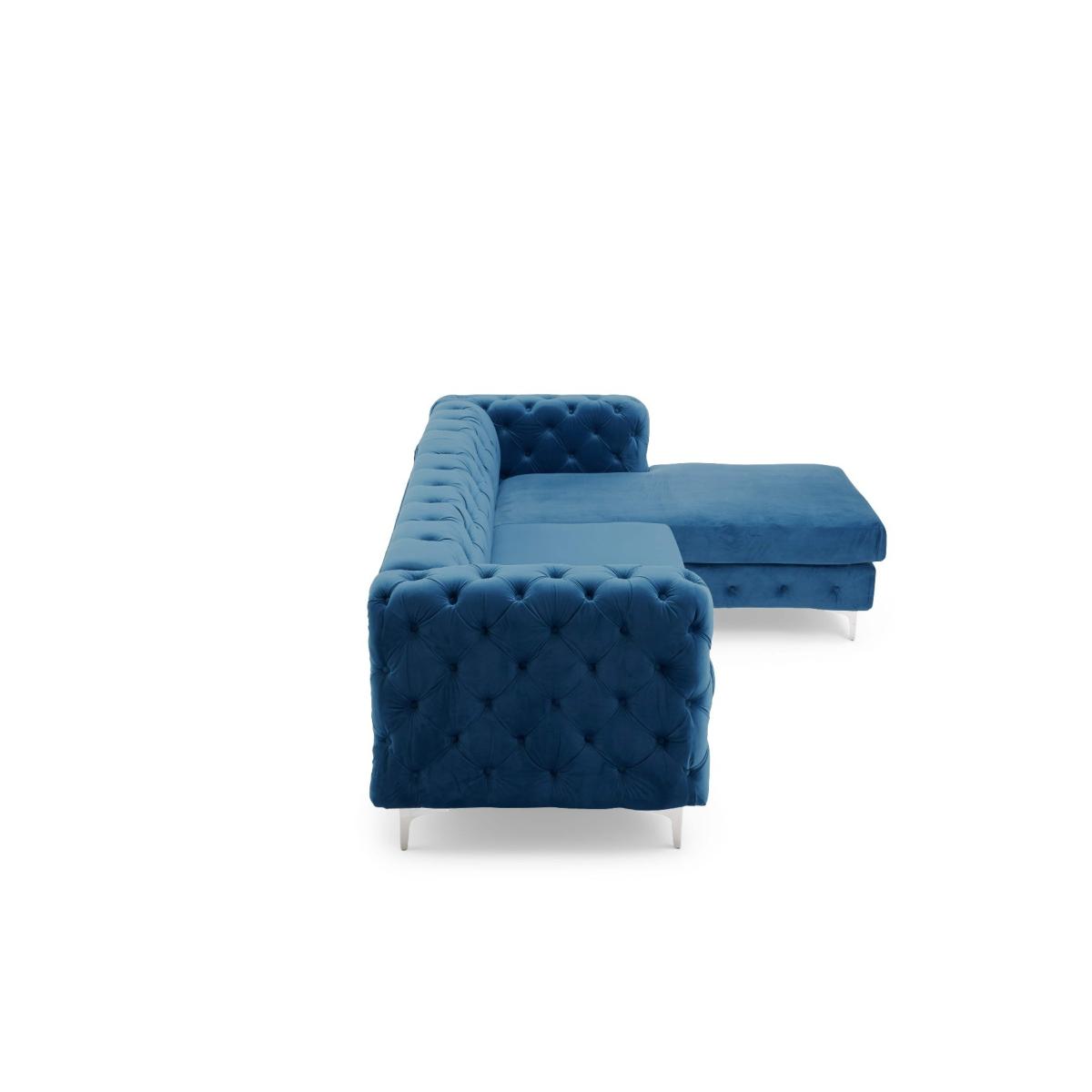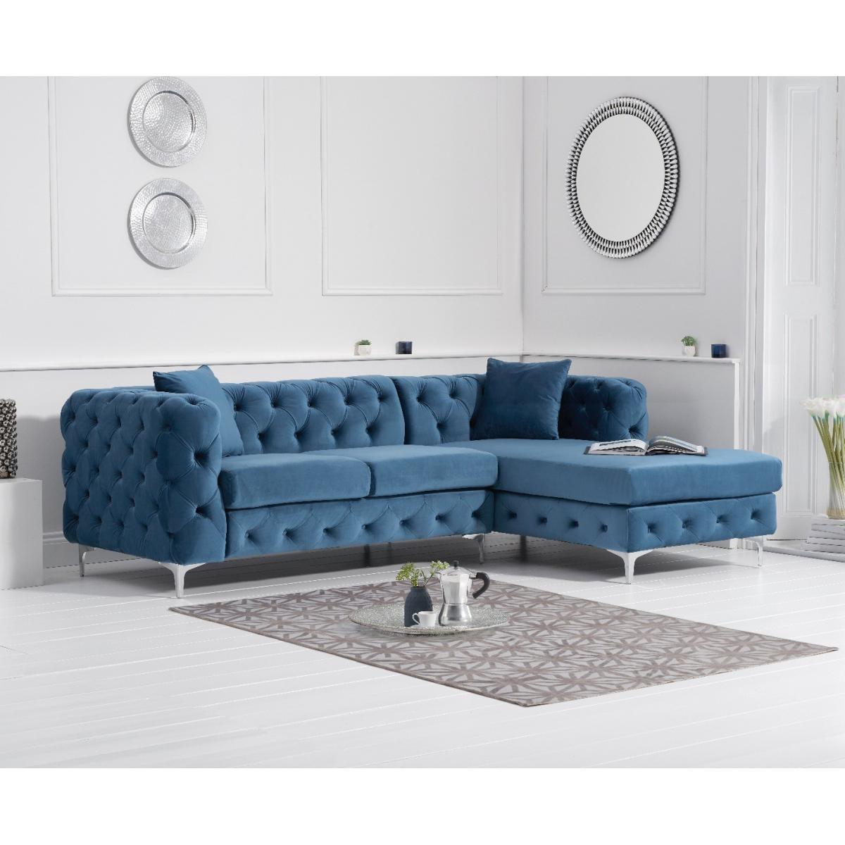 Barker Right Facing Blue Velvet 3 Seater Corner Sofa
