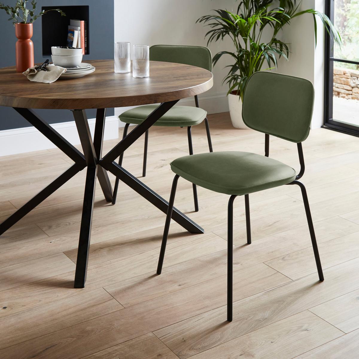 I’m a fan of the Barker chairs for their clean, slim-leg silhouette and muted olive upholstery - they give you colour without overpowering the space. They work equally well in Scandi-inspired kitchens, industrial lofts or a pared-back mid-century dining corner. For a pulled-together look, team them with a natural wood or black metal-base table and echo the olive tone in a linen runner or a couple of soft cushions. Keep surrounding décor simple - a statement pendant light and a potted plant are all you need to balance warmth and modern minimalism.