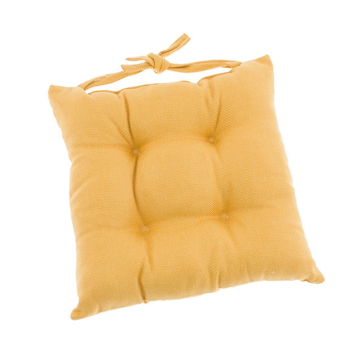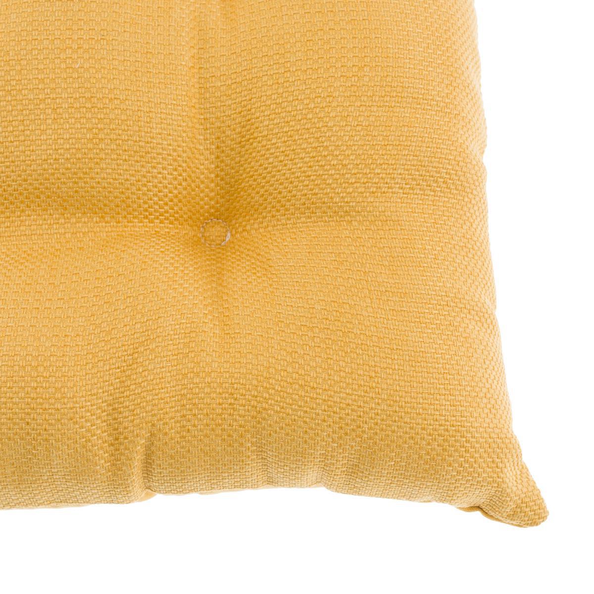 Finished in a stylish ochre yellow colourway with a subtle weave pattern, this square seat pad has an extra thick hollowfibre filling for maximum comfort. Easy to wipe clean, this seat pad comes complete with fabric ties to secure to the back of chairs.