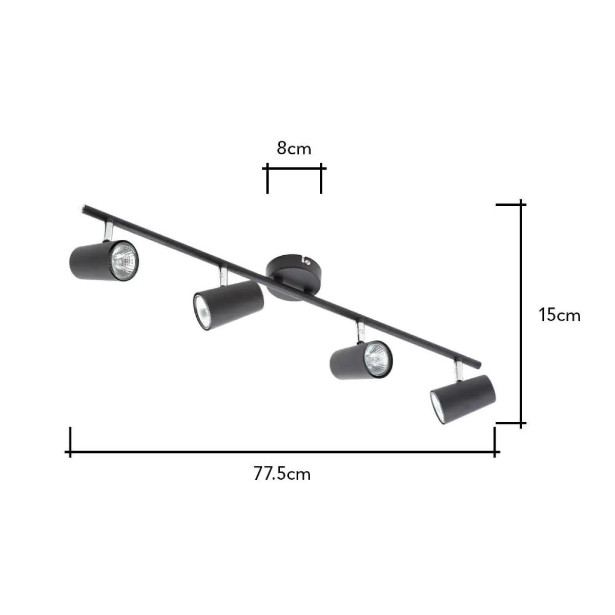 The Barley Spotlight bar makes an incredibly modern addition to your home, looking especially stylish in kitchens. This spotlight bar is finished in matte black, perfect for matching a dark themed room or creating a striking contrast against a white ceiling. Featuring 4 adjustable spotlight heads, this light fitting allows for a focused beam of light that is able to be pointed in any direction, especially useful for lighting worktops and counters. This minimal addition is sure to be the perfect lighting solution for any of your daily tasks that need better visibility.