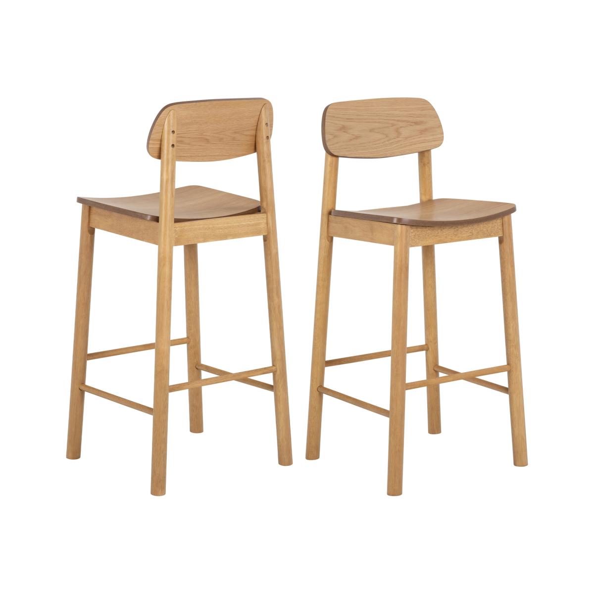 Elevate your dining experience with the SPair of Barlow Bar Stools, a perfect blend of style and functionality. Crafted with a matte oak AC lacquered veneer seat, this stool showcases the natural warmth and texture of wood, making it a stunning addition to any bar or kitchen counter. Its round oak-stained wooden frame and sturdy legs, complete with a built-in footrest, ensure both stability and comfort for prolonged sitting. This set of barstools not only enhances your decor but also provides a practical seating solution that is sure to impress both family and guests.