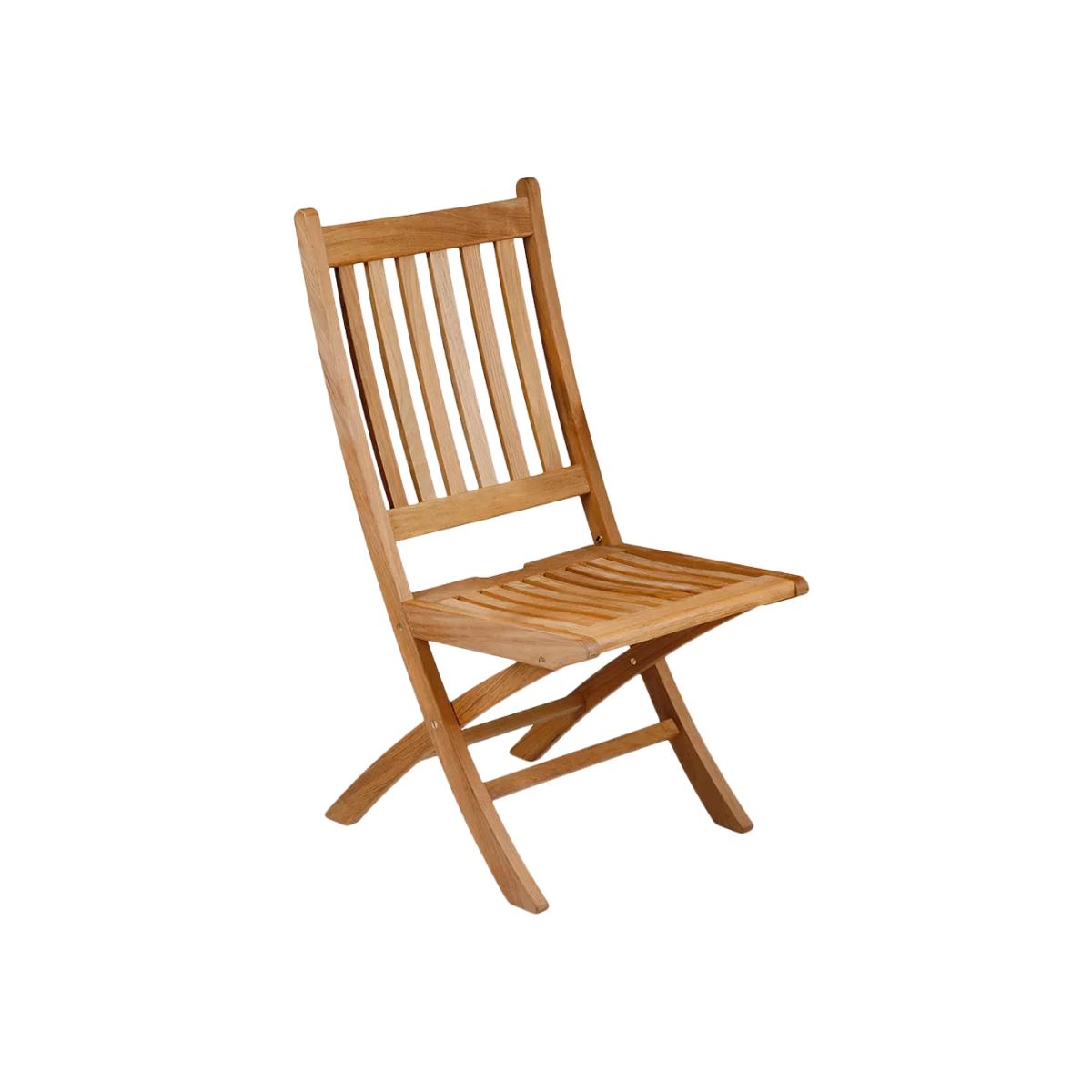 Ascot garden chair made of beautiful and naturally weather-resistant teak wood. Folds for easy storage and has a solid brass locking mechanism to prevent accidental closure. Choose the perfect outdoor furniture We have a selection of wooden furniture for you to choose from which will suit the home or garden. Below are a few options to consider when choosing your perfect outdoor furniture. TeakA premium and popular wood with an attractive appearance which ages beautifully. Strong, durable and resistant to rot and decay, this furniture requires little maintenanceEucalyptusDistinctive scent and appearance which darkens as it ages. Provides similar natural benefits to teak including moisture resistance, hardness and durability. It's plentiful in supply which makes the furniture an inexpensive choice. AcaciaNaturally durable, this wood is incredibly hard and is unlikely to suffer damage during everyday use. It provides similar natural benefits to teak, yet unlike many other hardwoods, acacia is also relatively fast growing which minimises the environmental impact.