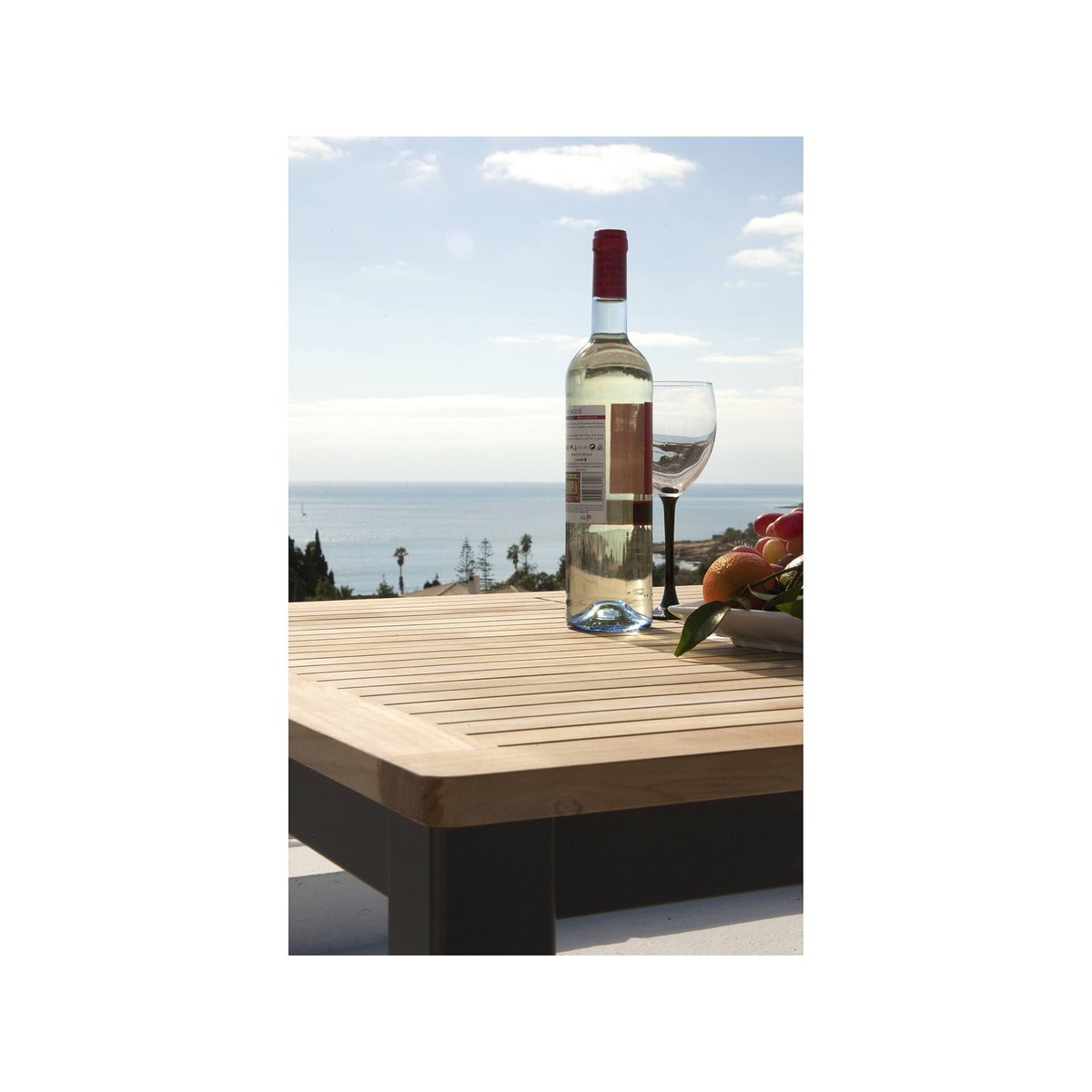 I love this table for its modern yet durable aesthetic, making it a versatile piece for a variety of outdoor settings. The FSC-certified teak top offers warmth and natural texture that pairs beautifully with a contemporary or even rustic interior style. Its graphite frame lends a sleek, muted contrast, working well in minimalist, industrial, or coastal schemes. Practical tips include pairing it with neutral or monochrome seating to keep the look fresh, or adding colourful cushions for a relaxed, inviting vibe. It’s perfect for casual alfresco dining and its sturdy build ensures longevity, even in Variable weather conditions.
