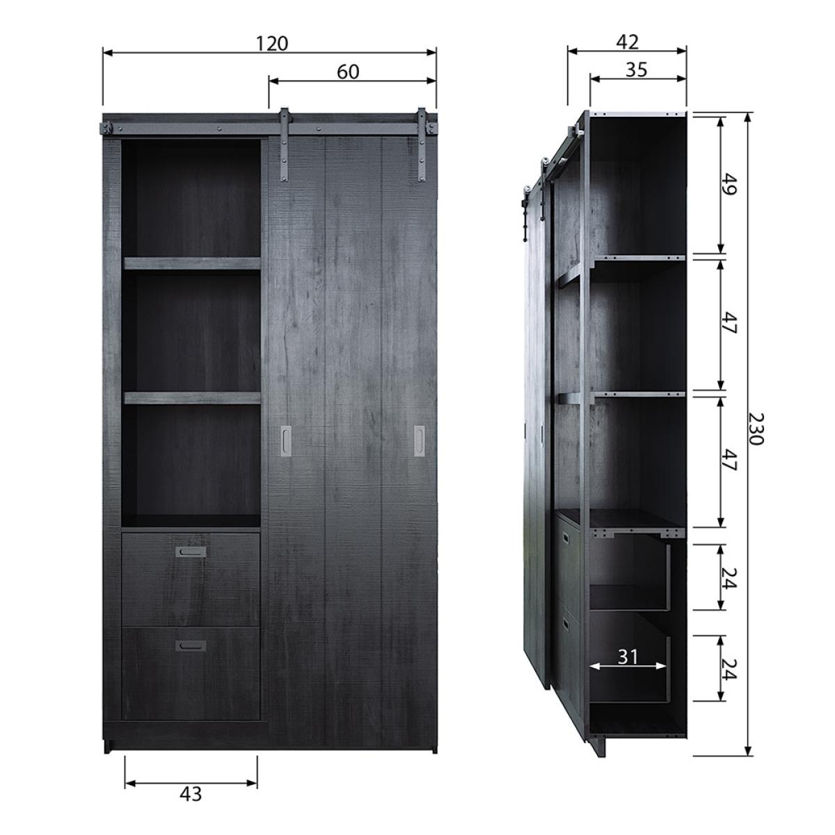 Keep all your bits and bobs neatly stored away with the Barn Cabinet with Sliding Door from Woood. Manufactured using only the highest quality responsibly sourced FSC Mix wood with a rough sawn finish giving this cabinet a stunning rustic look that would be a gorgeous addition to any room. With each side including two shelves and two drawers, there is plenty of space to hold all of your knick-knacks. What's more, with a sliding door it will be even easier to reach everything!.