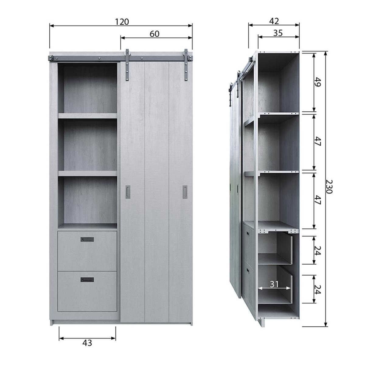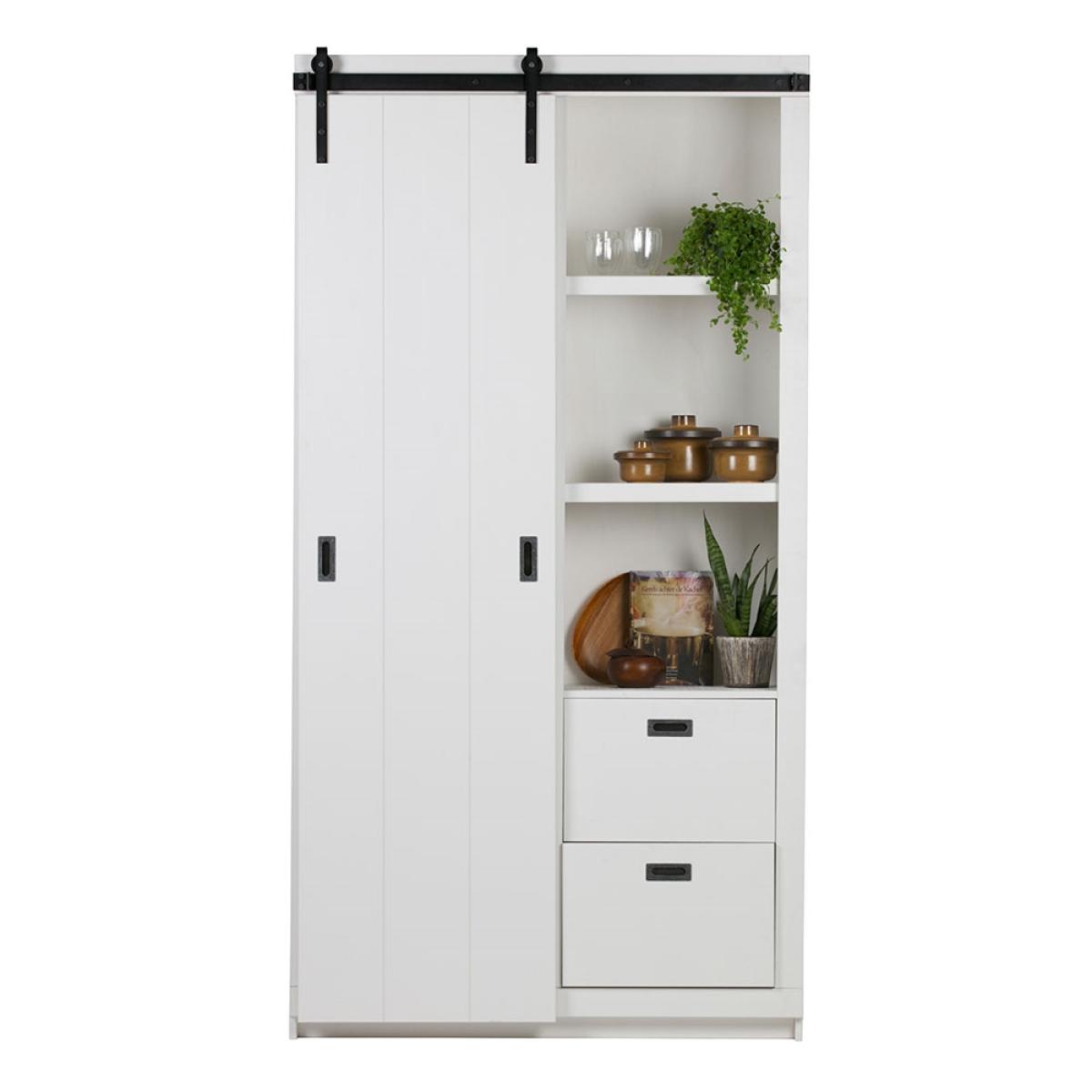 Keep all your bits and bobs neatly stored away with the Barn Cabinet with Sliding Door in White from Woood. Manufactured using only the highest quality responsibly sourced FSC Mix wood with a rough sawn finish giving this cabinet a stunning rustic look that would be a gorgeous addition to any room. With each side including two shelves and two drawers, there is plenty of space to hold all of your knick-knacks. What's more, with a sliding door it will be even easier to reach everything!.