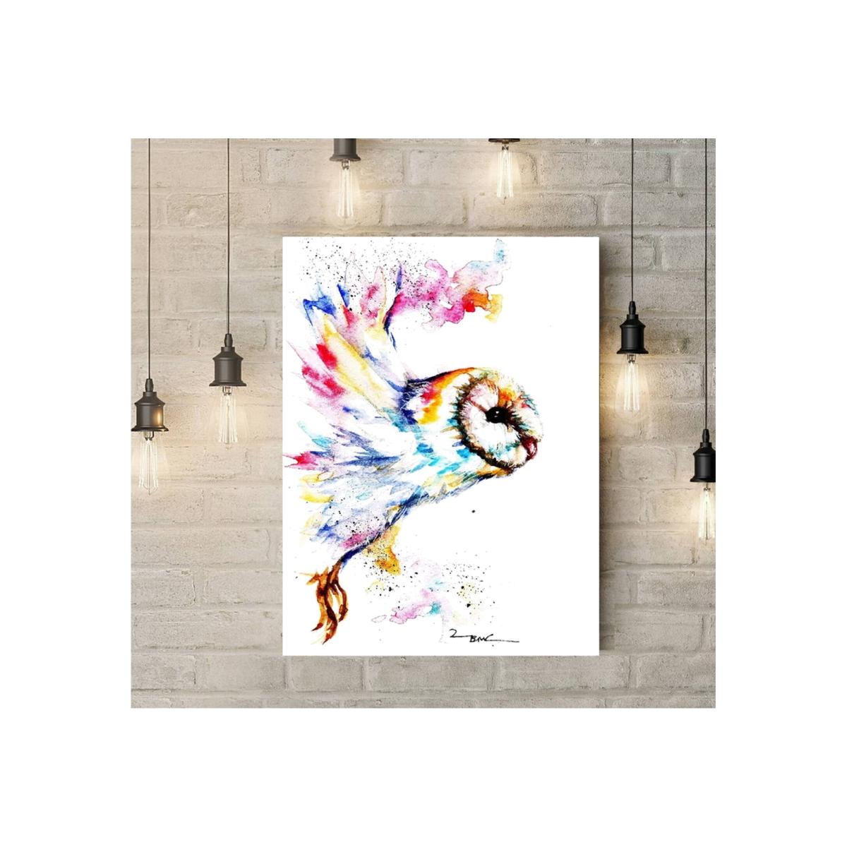 Inspired by the beauty of nature, Be Coventry originally painted this whimsical scene of Barn Owl in flight in professional watercolours. Now recreated in print on a box canvas, this artwork will enhance any room in your home. The watercolour design is printed onto 260gsm Matte Polyester canvas, and attached to quality pine timber. The canvas is taped on the rear and is supplied with a wall-hanging kit.
