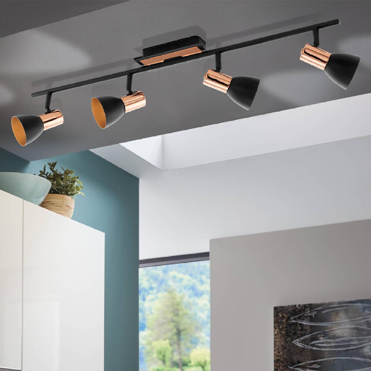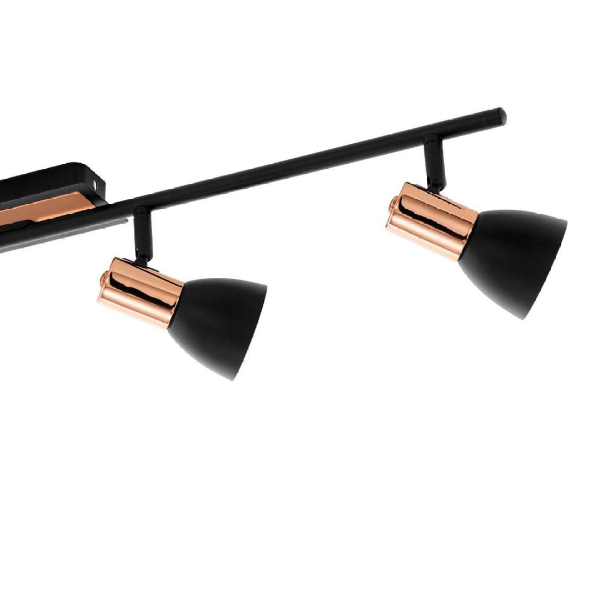 Contemporary LED spotlight bar finished in matt black and copper. The Barnham 4 light led spotlight bar is the perfect addition to the home. This piece features 4 omnidirectional lights which can be adjusted to suit the owner's needs. The lamp heads are composed of a copper bulbholder with the shade being finished in matt black. The base and stems are also finished in matt black. Contemporary LED spotlight bar finished in matt black and copper. The Barnham 4 light led spotlight bar is the perfect addition to the home. This piece features 4 omnidirectional lights which can be adjusted to suit the owner's needs. The lamp heads are composed of a copper bulbholder with the shade being finished in matt black. The base and stems are also finished in matt black.