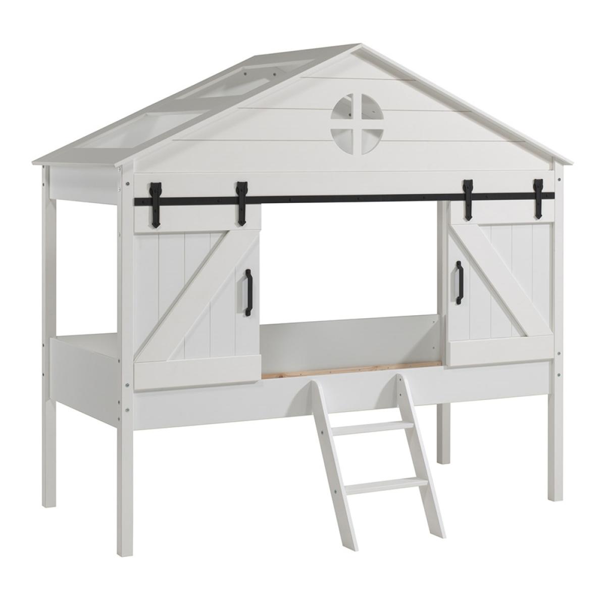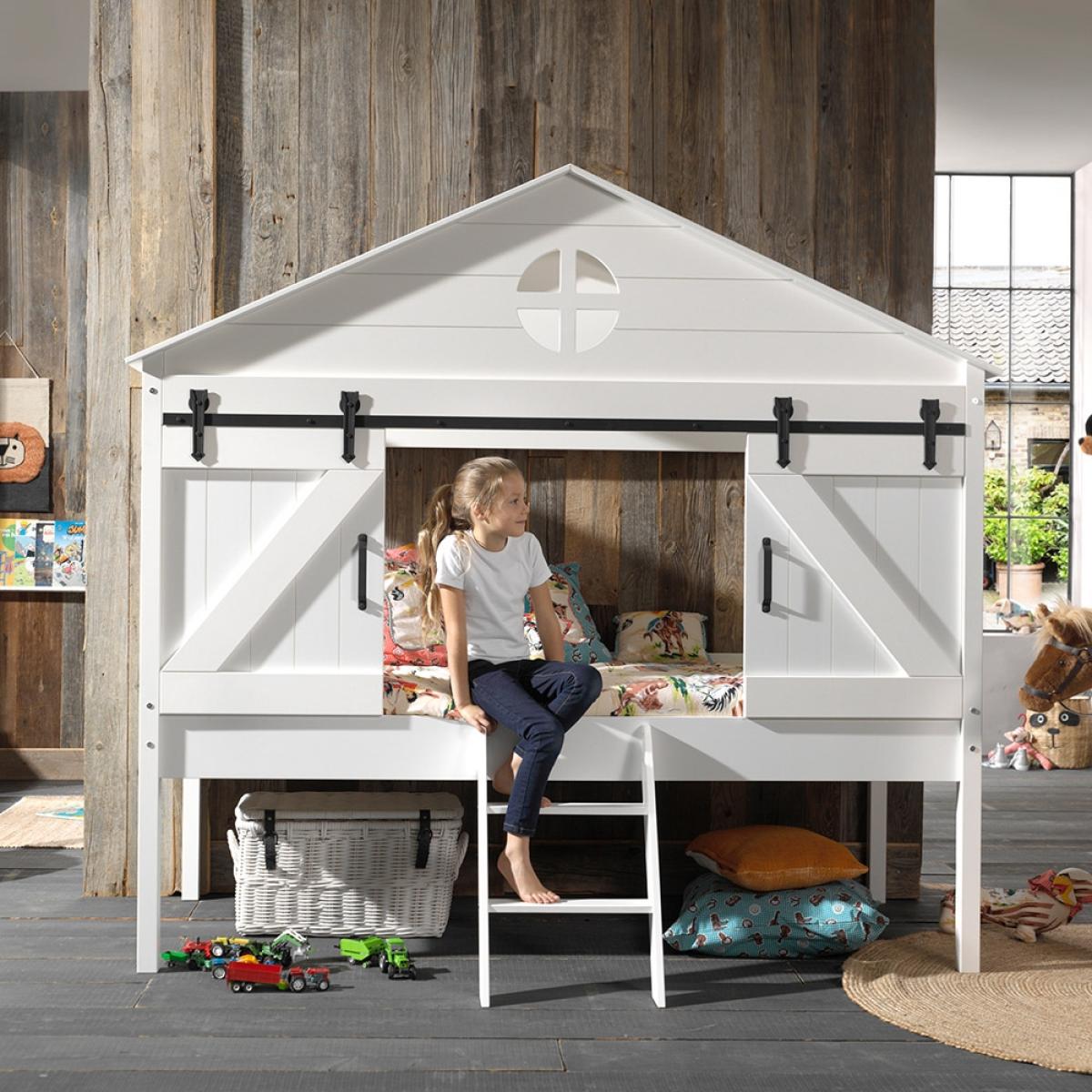 The Barnie Mid Sleeper Barn Bed is a spectacular bed that we think your kiddie will love even more than we do here at Cuckooland. With two barn style doors on a black track system (don't panic though! The doors are fixed, meaning no trapped fingers!) and a circular cut out window, you are sure to have one happy youngster with them knowing this is what awaits them at bedtime. Featuring cut outs in the roof, your little one will be able to gaze out at the stars and let their imaginations send them off to sleep.
