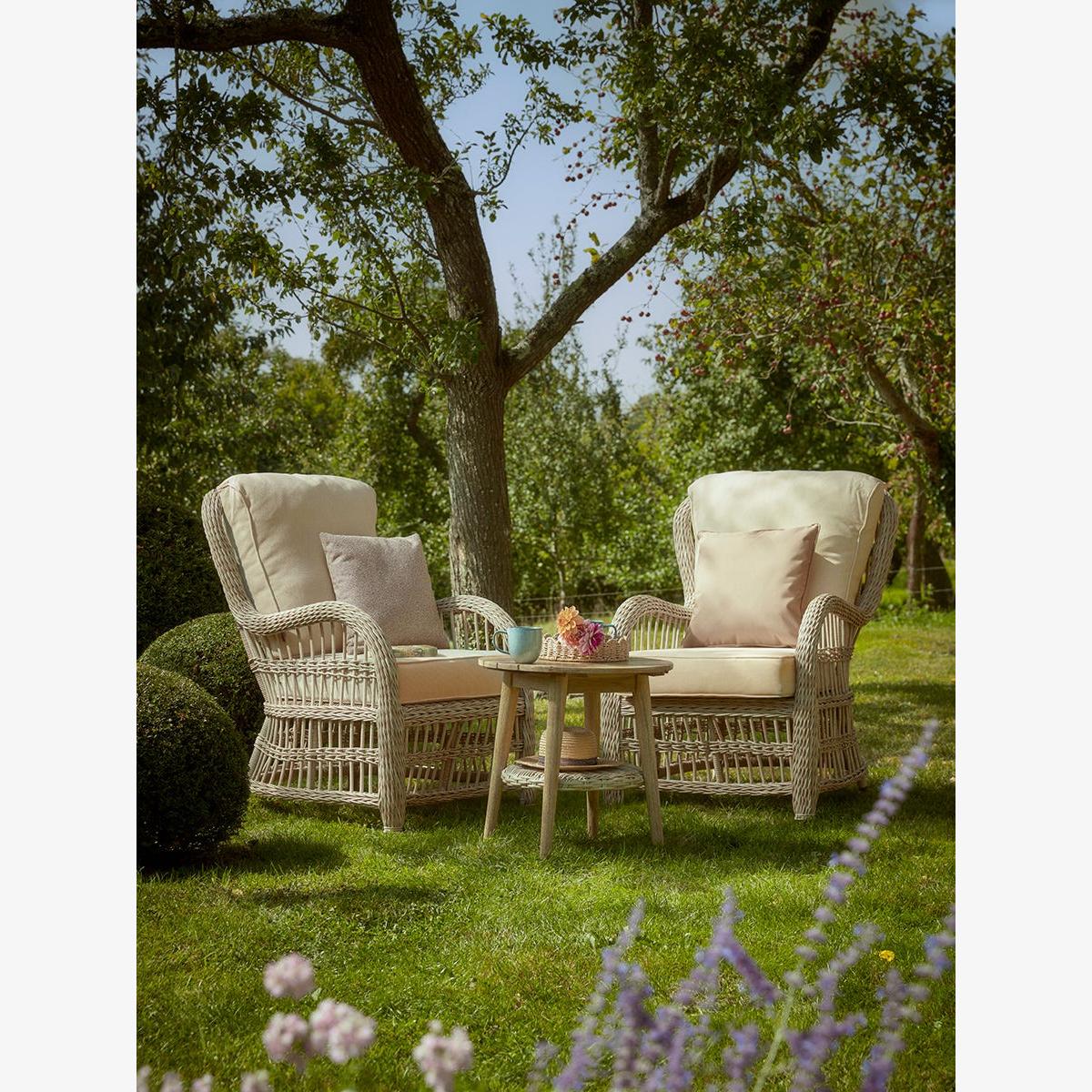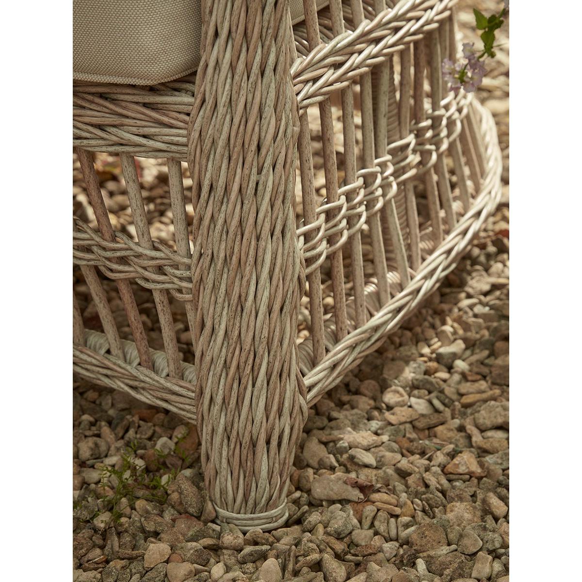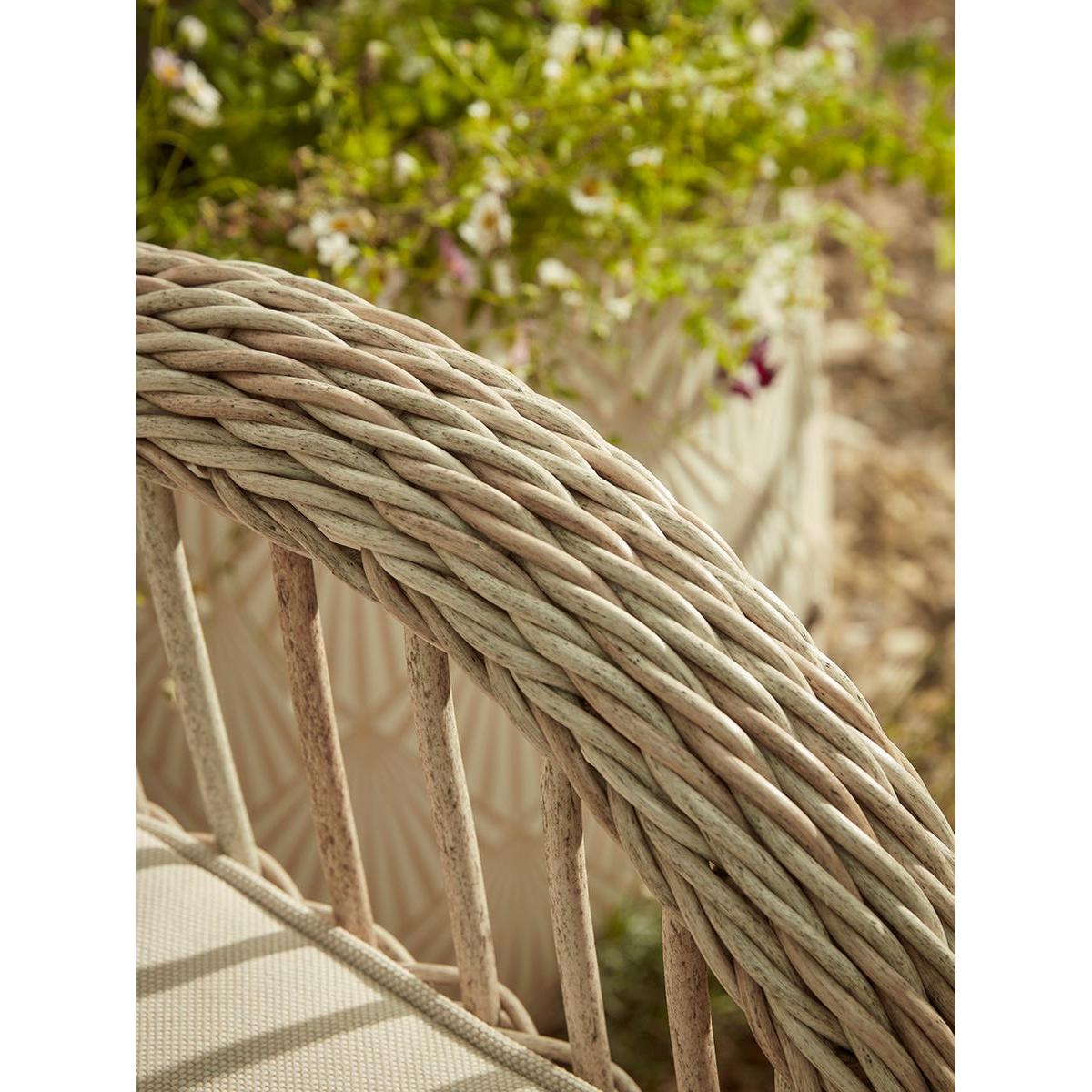 Relish in the nostalgia of Grannys cottage with our Barolo Bistro Set. Set up in your garden and relax into the high backs and super soft cushions for the most comfortable and snug place to while away the summer days with a ice cool drink and good book. Made from a blonde wicker, these frames have a cool tone and are paired with light-washed cushion for an airy and whimsical feel to your garden.