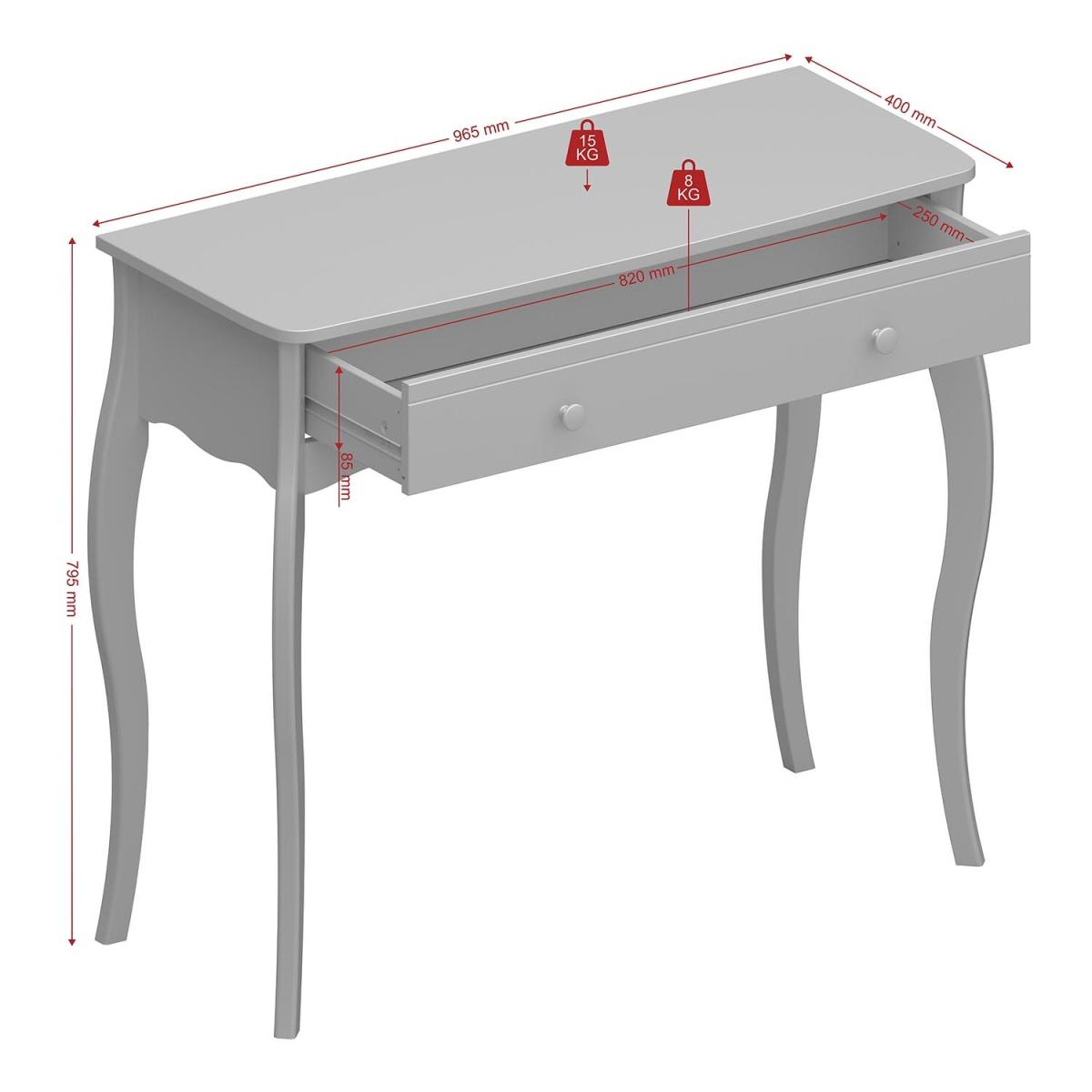 Add a touch of elegance to your bedroom with this gorgeous Provence-inspired Baroque Dressing Table. With delicate detailing and stainless steel handles, this piece will work well with a variety of décors and themes. The single drawer offers great storage space for makeup, jewellery, hair accessories and more, helping to keep your essentials organised and within easy reach. The Dressing Table is best matched with the Baroque Dressing Table Stool and Mirror.