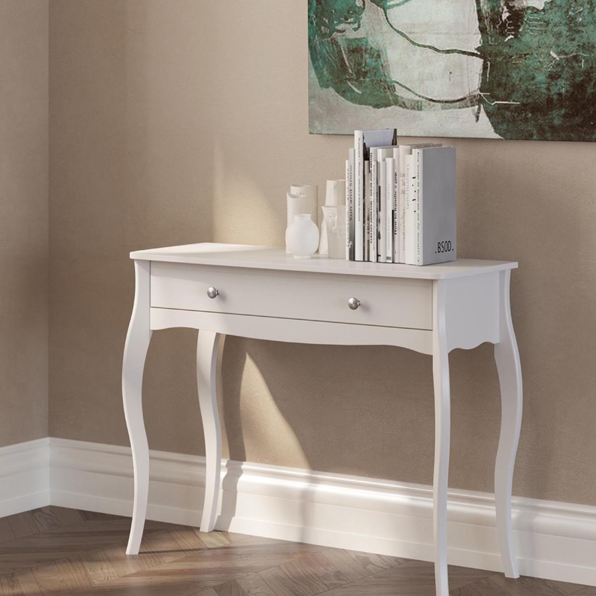 I love this little vanity because of its classic, elegant shape and versatile white finish, which can really brighten up a space. It works well in both traditional and shabby chic interiors, especially when paired with vintage accessories or soft, feminine textiles. Practical styling tips include keeping the surface clutter-free with attractive organisers or trays, while adding a mirror above can complete the look. This dressing table is particularly suited for bedrooms or garderobes that aim for a timeless, softly romantic vibe or even a coastal-inspired scheme. Its compact size makes it perfect for smaller rooms or as a statement piece in a larger space.