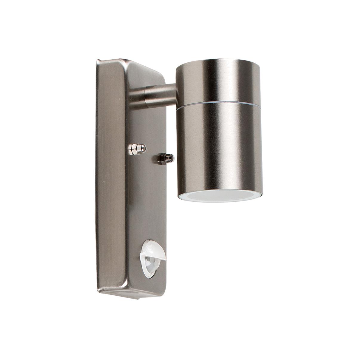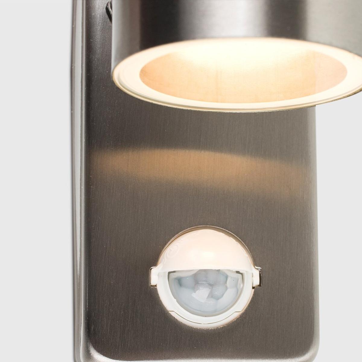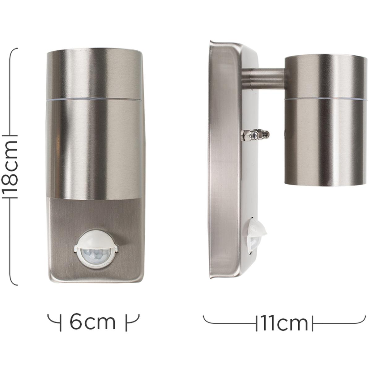 This modern outdoor wall lantern is an ideal product to help create a warm and inviting glow to doorways, porches and external walls. Features PIR motion sensor detector technology. This lantern is a stylish way to add security to your home as well as outdoor decorative lighting. Lighting emits from the bottom of the lantern.