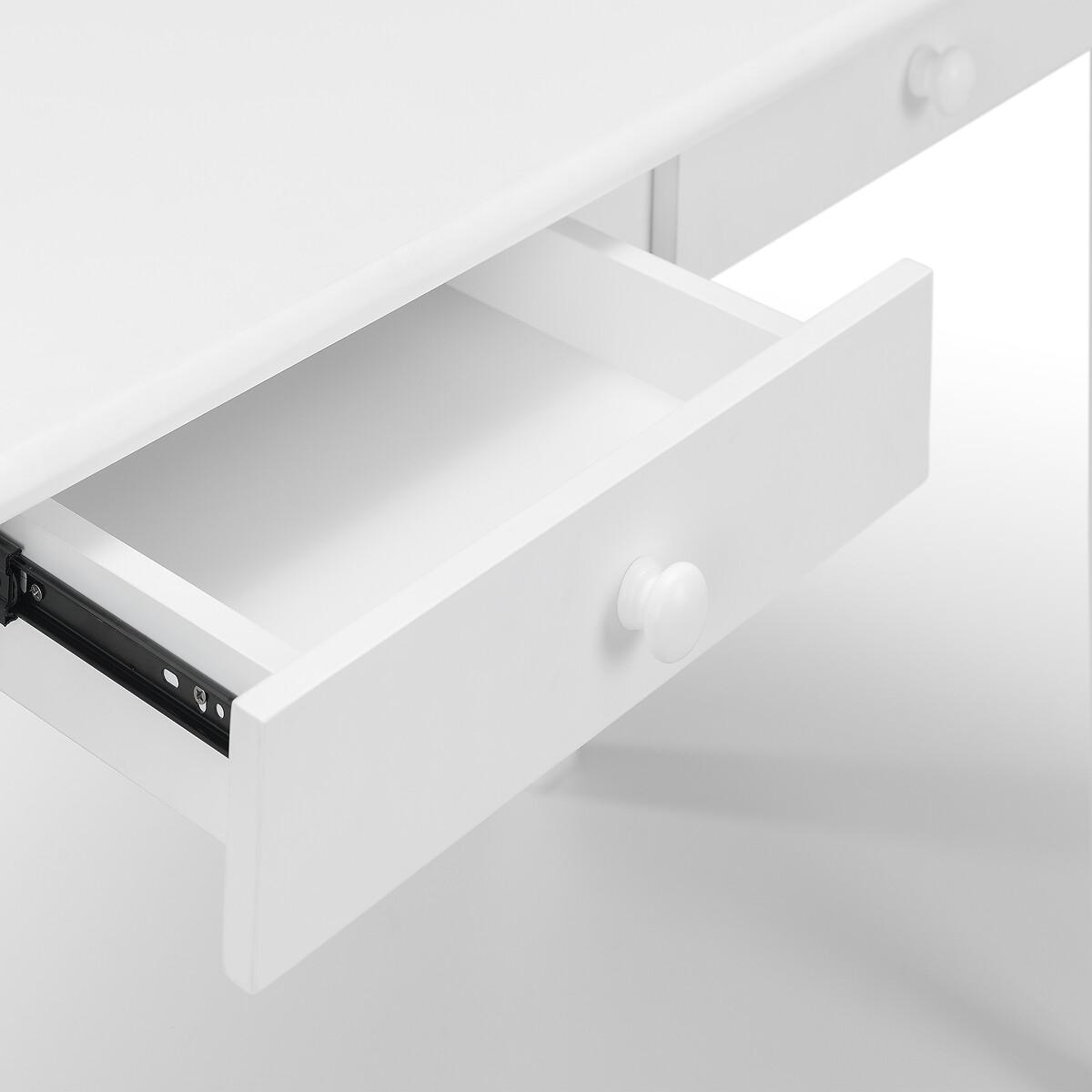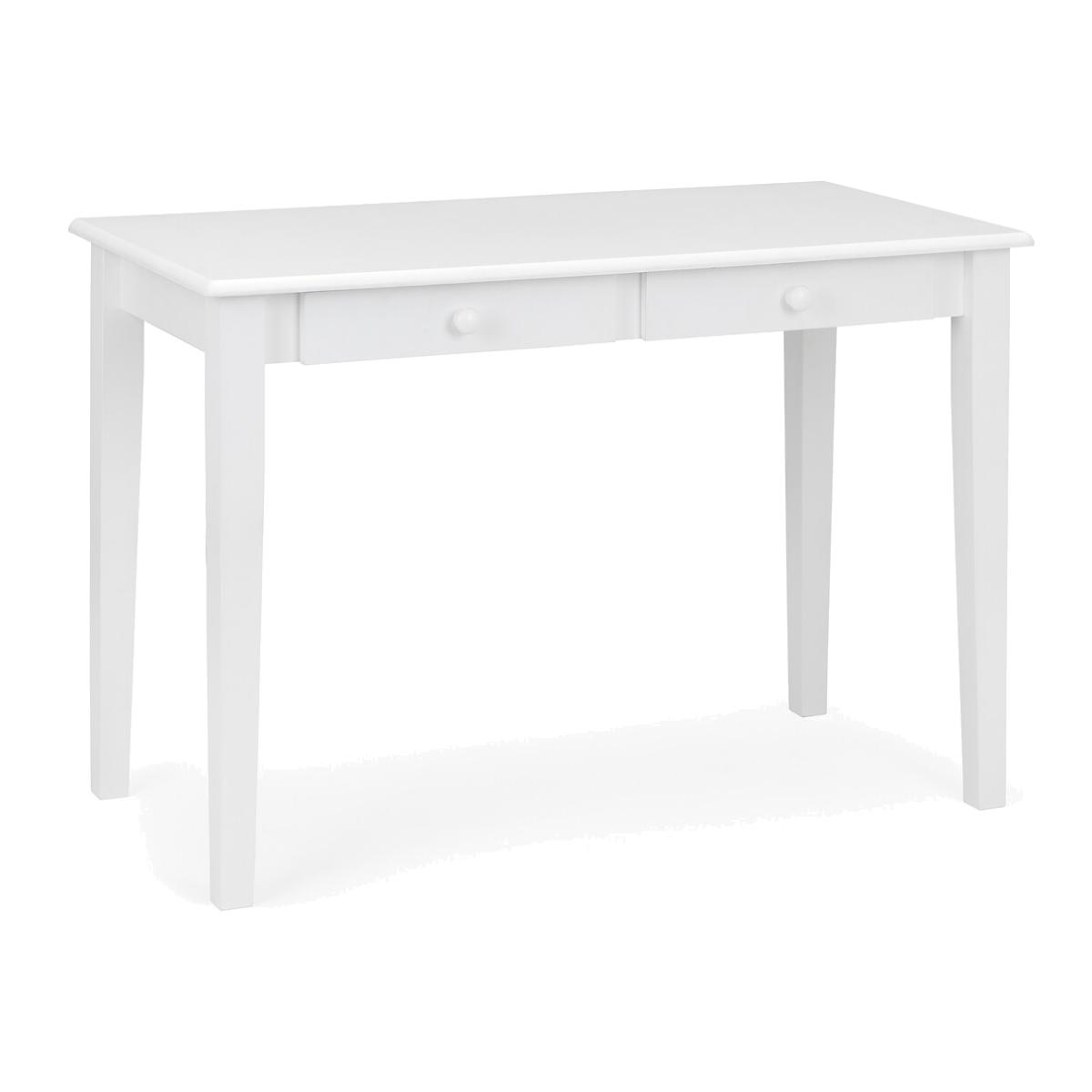 Finished in a crisp lacquer, the free-standing Barson Desk has a simple, yet stylish look. Featuring two drawers with rounded handles for storing all your stationary essentials, the Barson Desk offers a compact design suitable for a range of décor. Product details • Lacquered smooth finish • Solid pine and MDF construction • Rounded handles • 2 drawers with metal slide opening • Compact size • Assembly required • Fixings supplied • 12 month manufacturer warranty • Height Under Desk: 60 cm. Product Composition - 90% Lacquered Pine &10% Mdf. Product Dimensions - 56 cm x 110 cm x 74 cm , Weight - 20 KGPackage Dimensions - 119 cm x 62 cm x 16.5 cm, Weight 23 kg. Please note: this product cannot be be delivered to all Offshore Islands Northern Ireland or Republic of Ireland. This product will be dispatched by one of our trusted suppliers. You’ll be contacted by their selected courier about your delivery.
